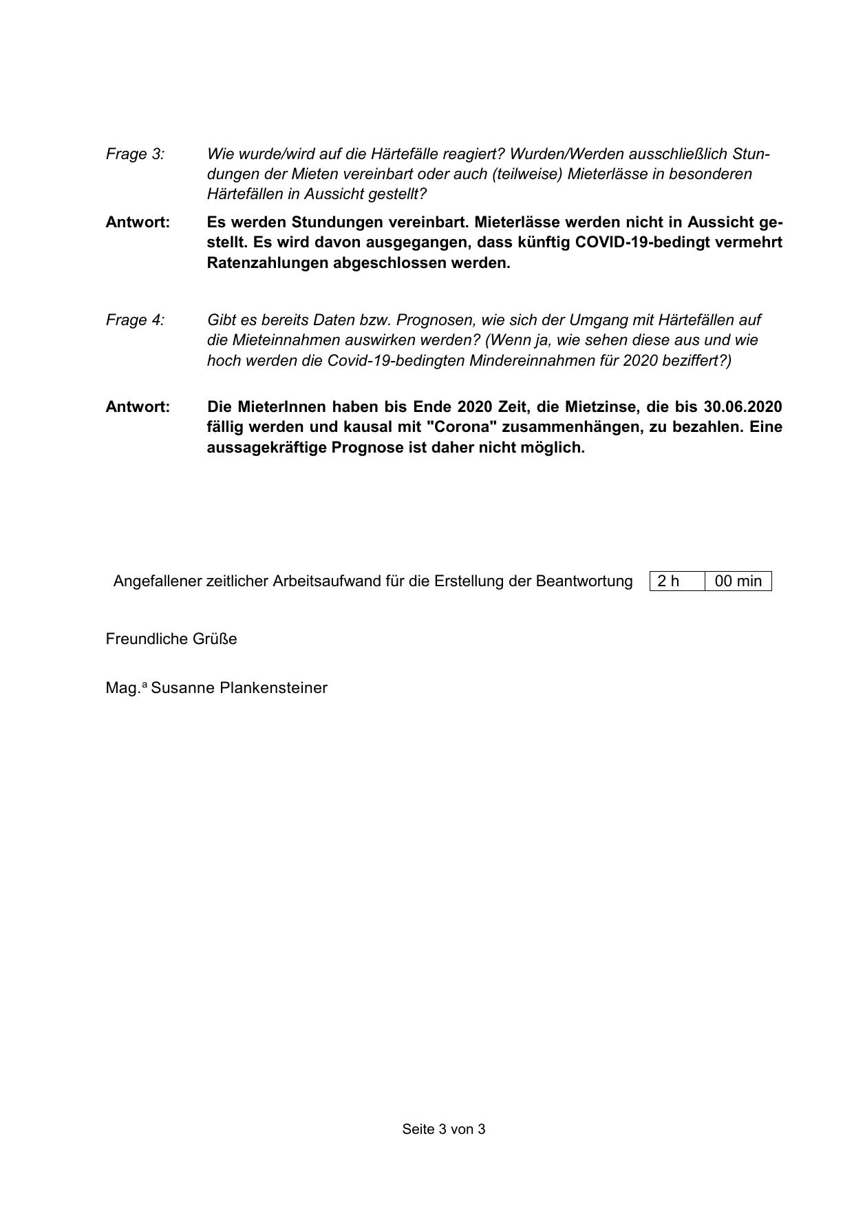 Es werden Stundungen vereinbart. Mieterlässe werden nicht in Aussicht gestellt. Es wird davon ausgegangen, dass künftig COVID-19-bedingt vermehrt