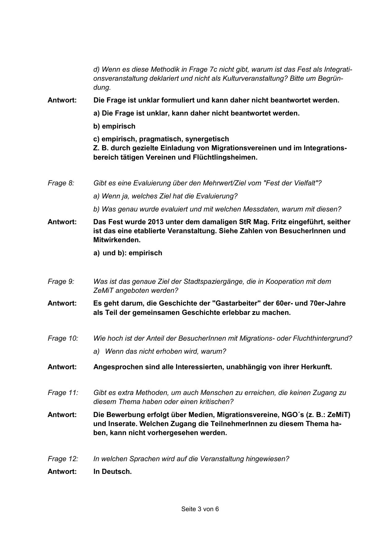 Gibt es eine Evaluierung über den Mehrwert/Ziel vom "Fest der Vielfalt"?
