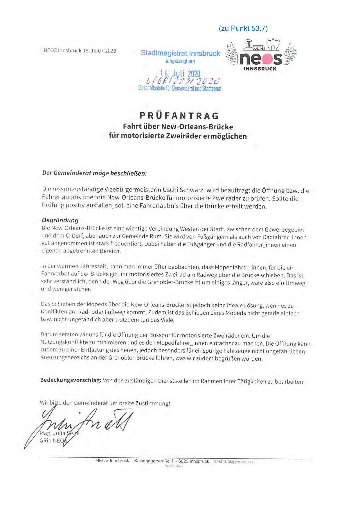NEOS Innsbruck - Kaiserj ä gerstra ße 1 - 6020 Innsbruck I innsbruck @ neos.eu
