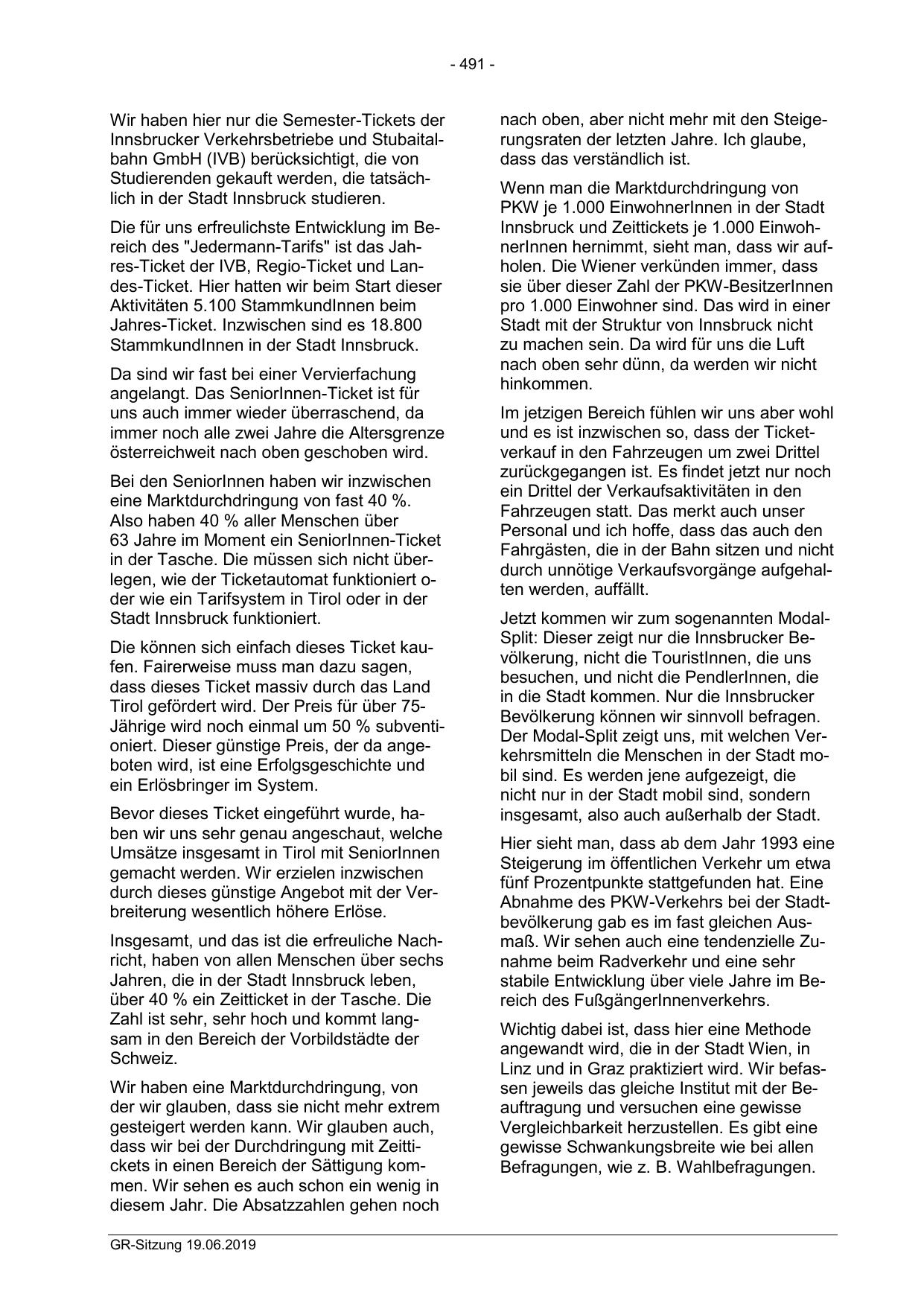 Innsbruck und Zeittickets je 1.000 EinwohnerInnen hernimmt, sieht man, dass wir aufholen. Die Wiener verkünden immer, dass