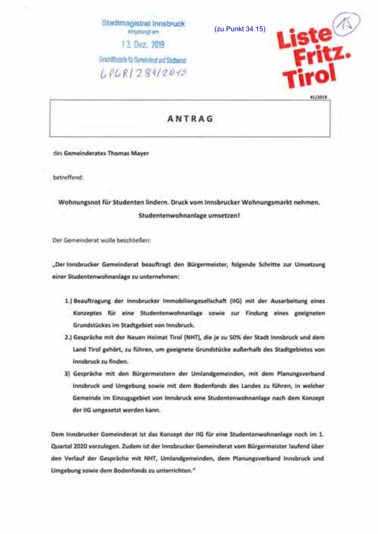 „Der lnnsbrucker Gemeinderat beauftragt den Bürgermeister, folgende Schritte zur Umsetzung