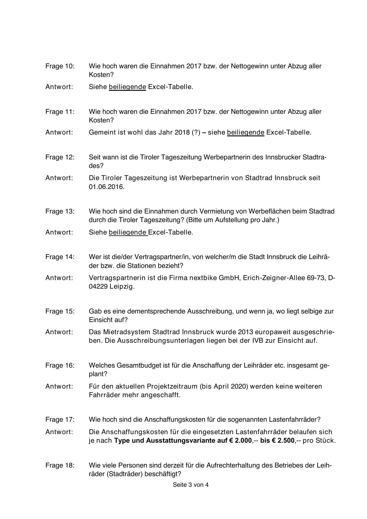 Das Mietradsystem Stadtrad Innsbruck wurde 2013 europaweit ausgeschrieben. Die Ausschreibungsunterlagen liegen bei der IVB zur Einsicht auf.