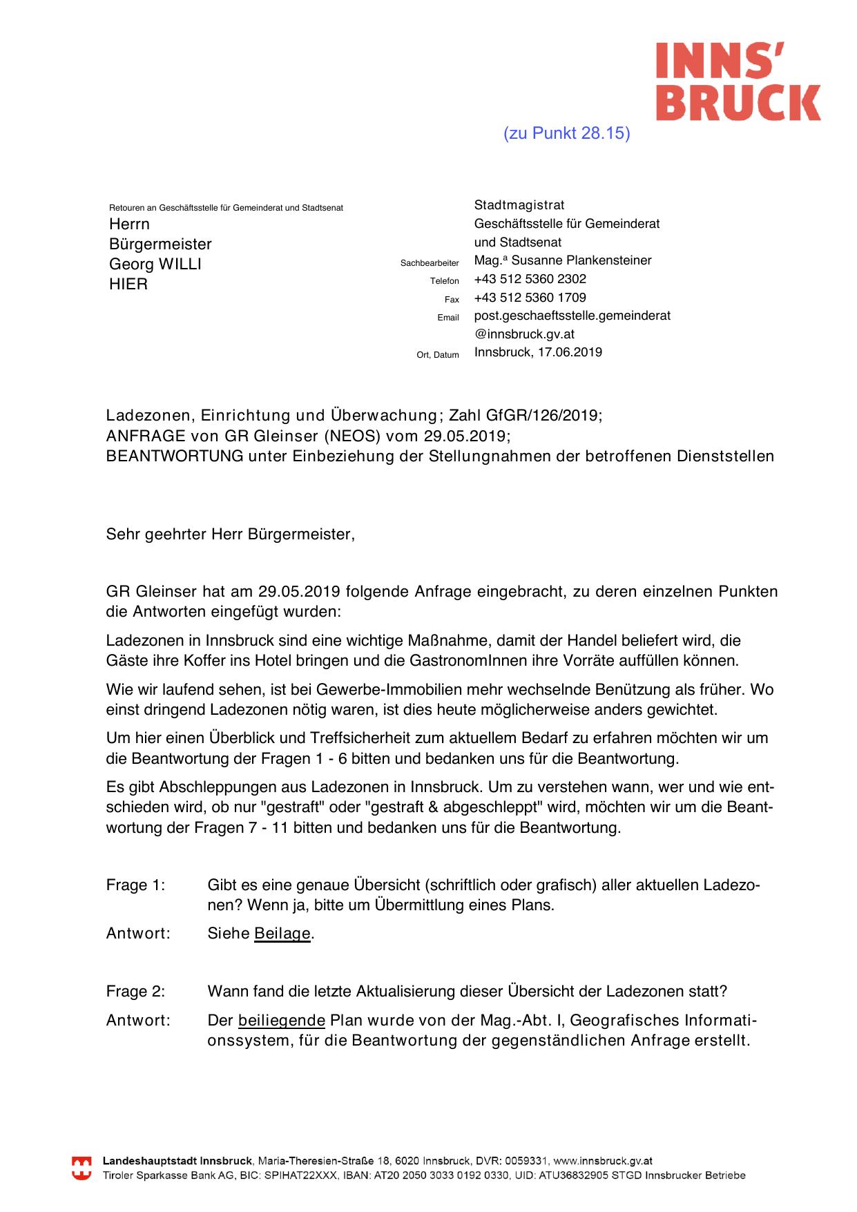 ANFRAGE von GR Gleinser (NEOS) vom 29.05.2019;