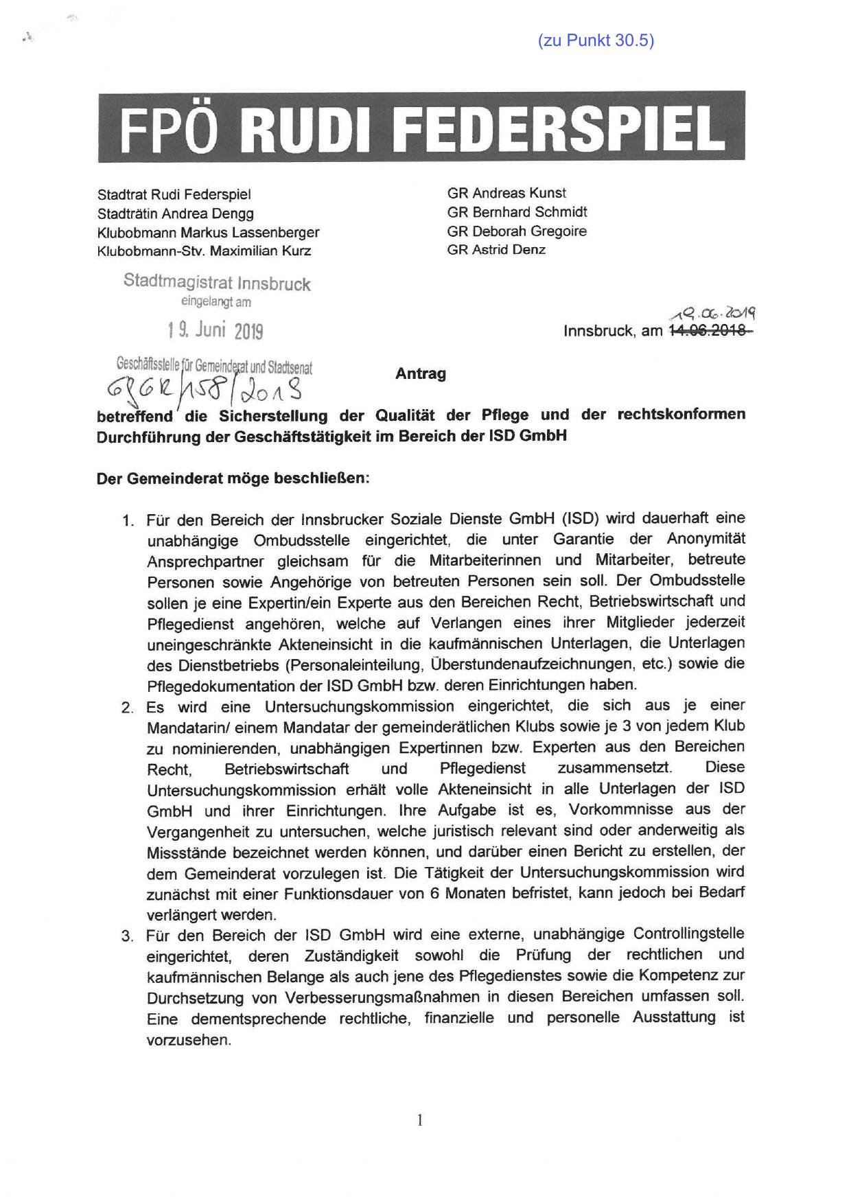 1. Für den Bereich der lnnsbrucker Soziale Dienste GmbH (ISO) wird dauerhaft eine