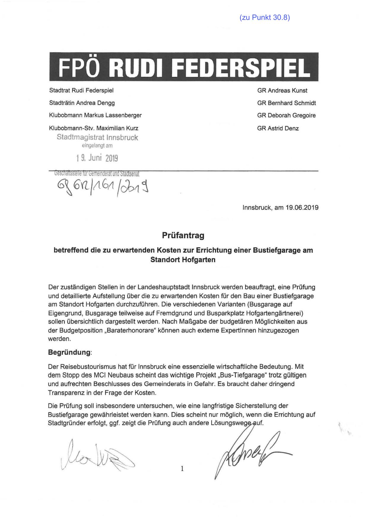 Der zuständigen Stellen in der Landeshauptstadt Innsbruck werden beauftragt, eine Prüfung