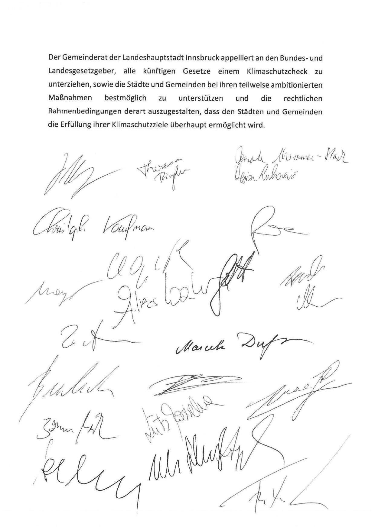 Der Gemeinderat der Landeshauptstadt Innsbruck appelliert an den Bundes- und