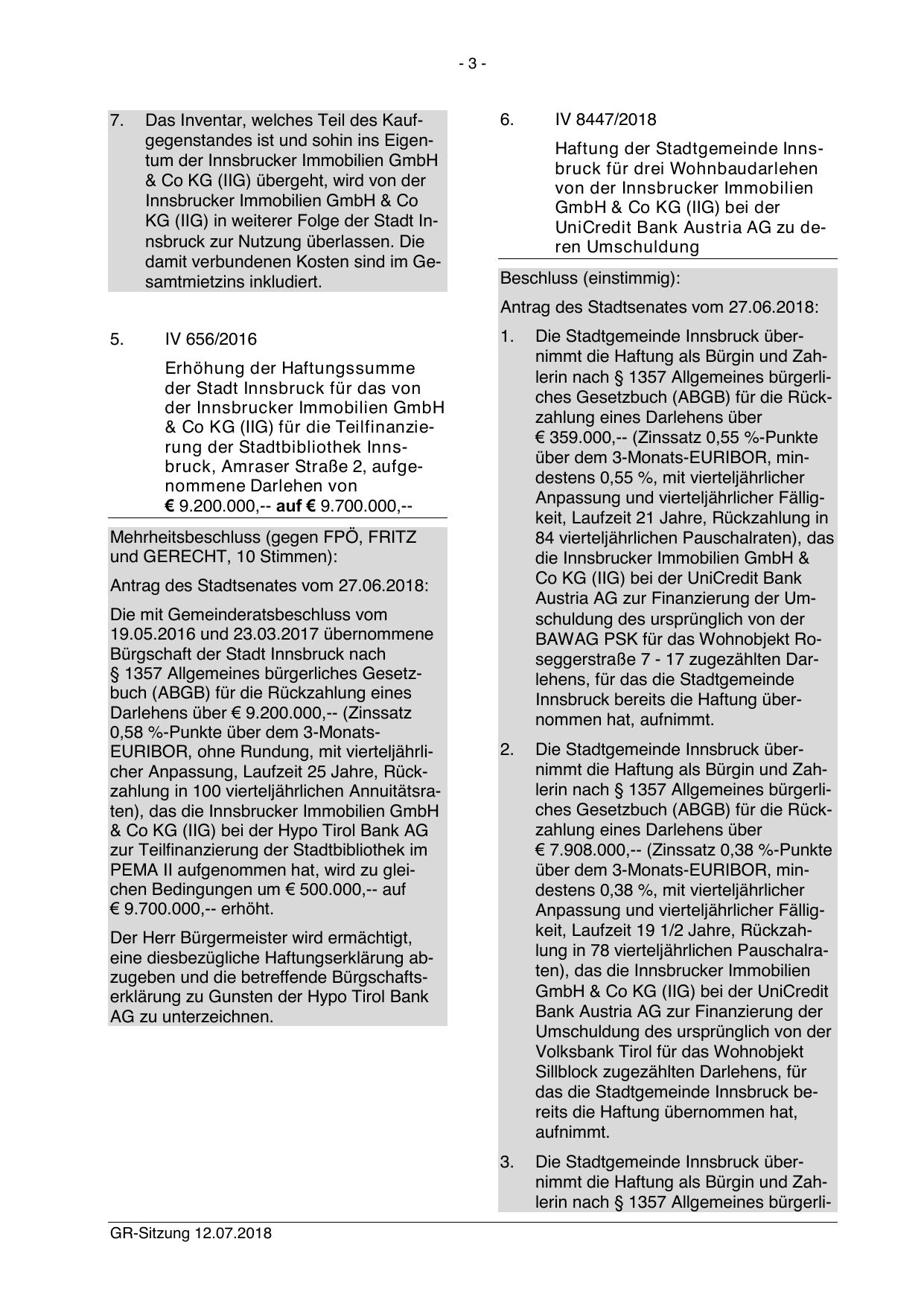& Co KG (IIG) für die Teilfinanzierung der Stadtbibliothek Innsbruck, Amraser Straße 2, aufgenommene Darlehen von