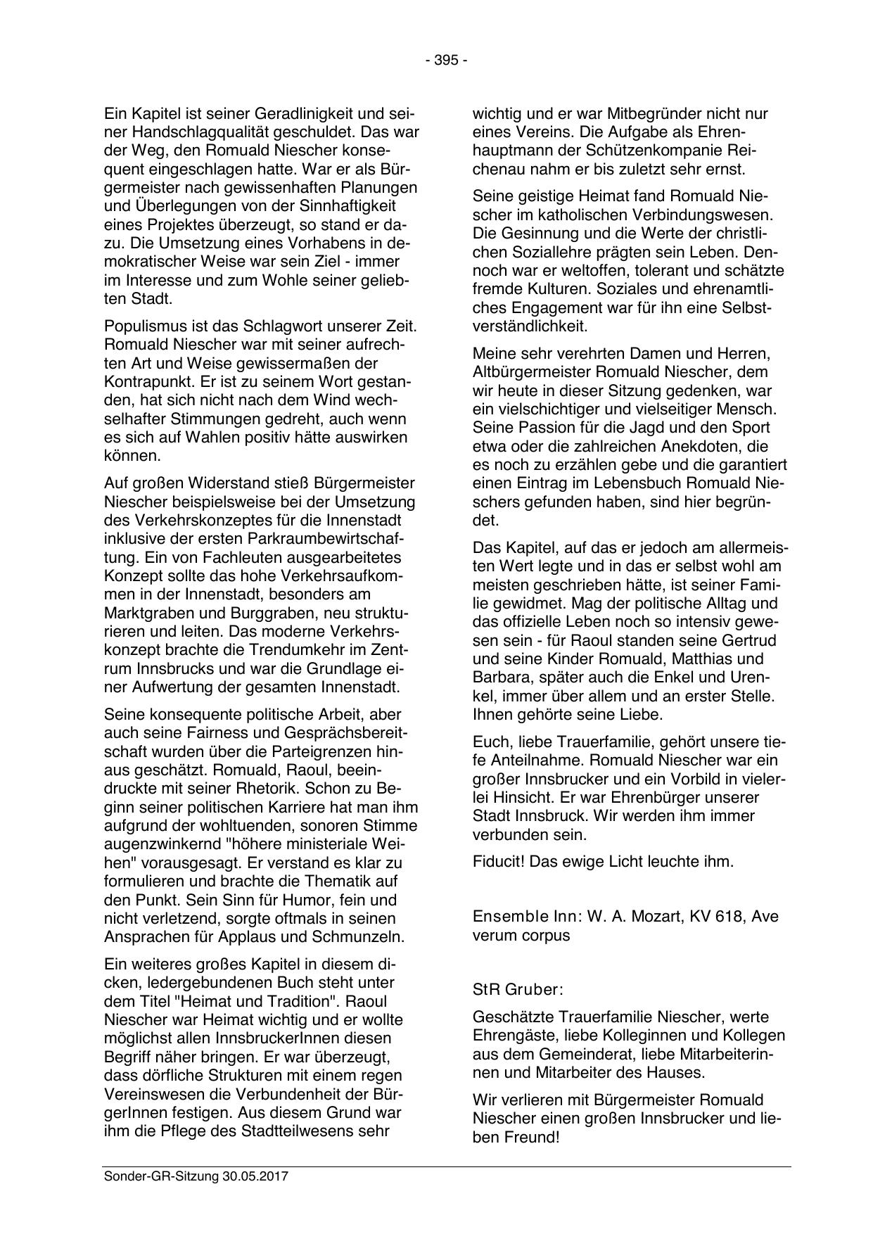 großer Innsbrucker und ein Vorbild in vielerlei Hinsicht. Er war Ehrenbürger unserer
