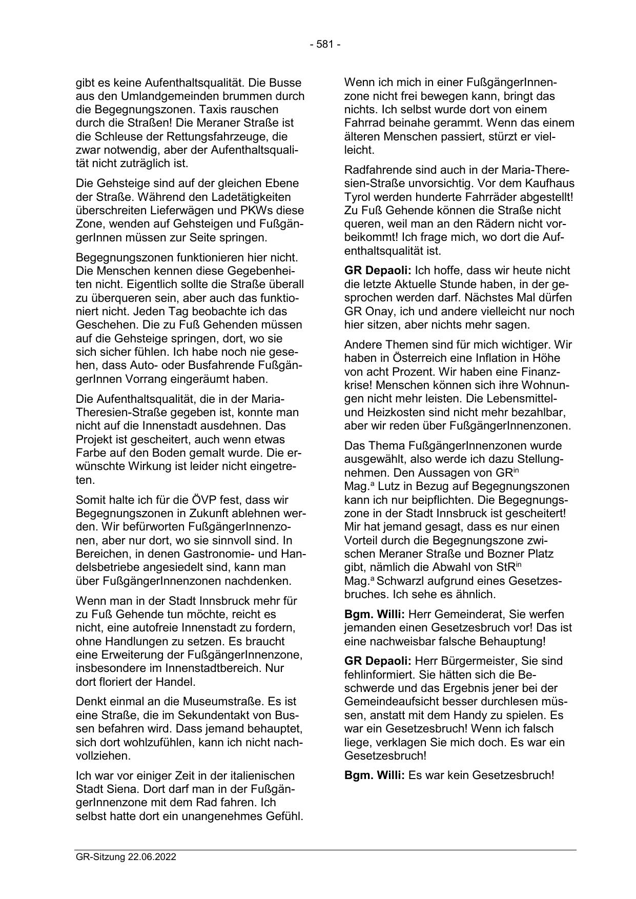 GR Depaoli: Herr Bürgermeister, Sie sind