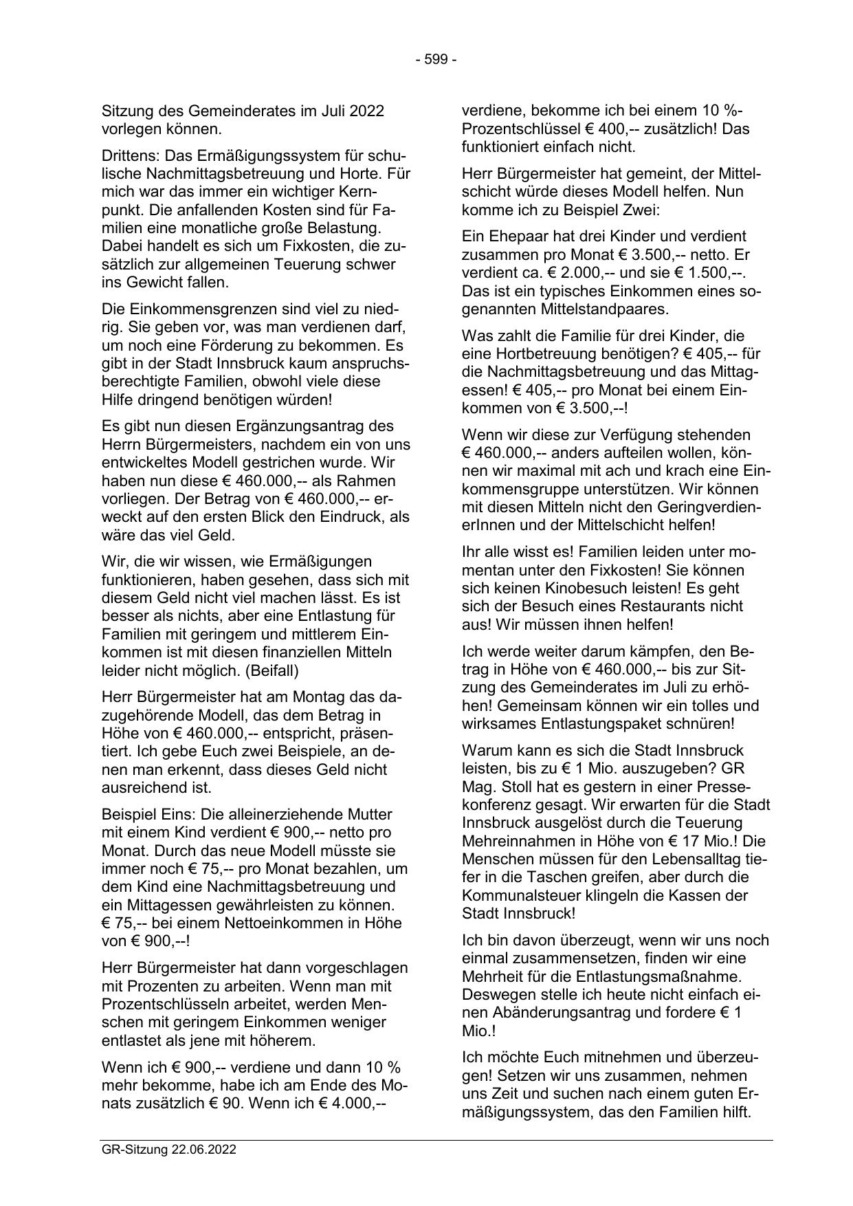 mehr bekomme, habe ich am Ende des Monats zusätzlich € 90. Wenn ich € 4.000,-GR-Sitzung 22.06.2022