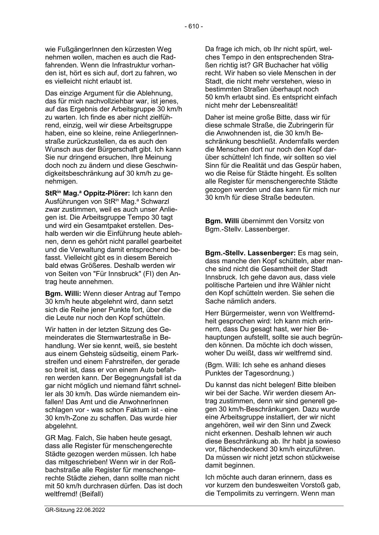Bgm. Willi: Wenn dieser Antrag auf Tempo
