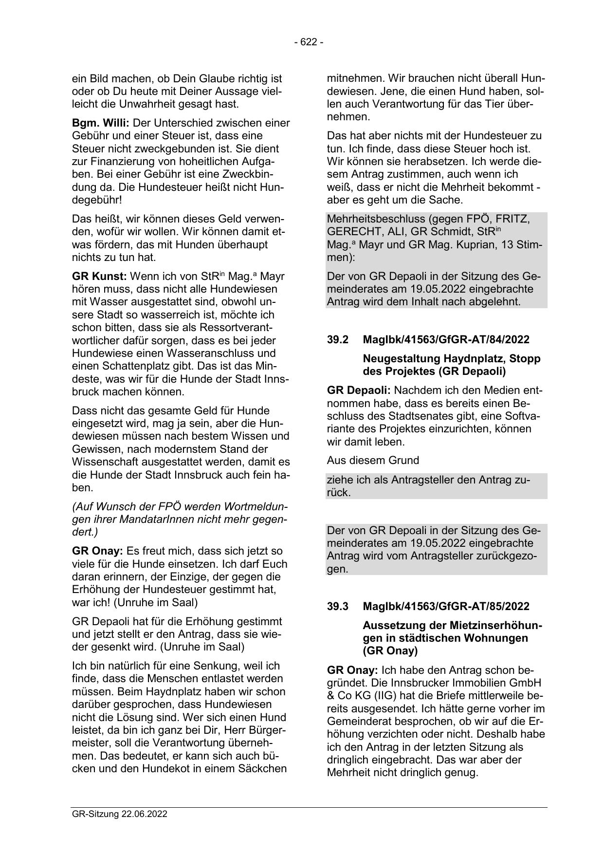 Der von GR Depaoli in der Sitzung des Gemeinderates am 19.05.2022 eingebrachte