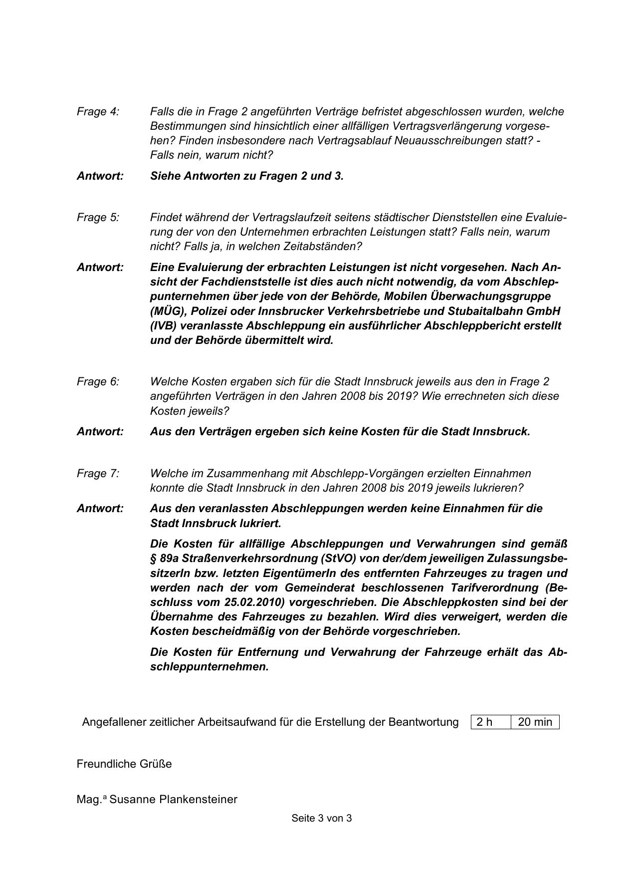 (IVB) veranlasste Abschleppung ein ausführlicher Abschleppbericht erstellt