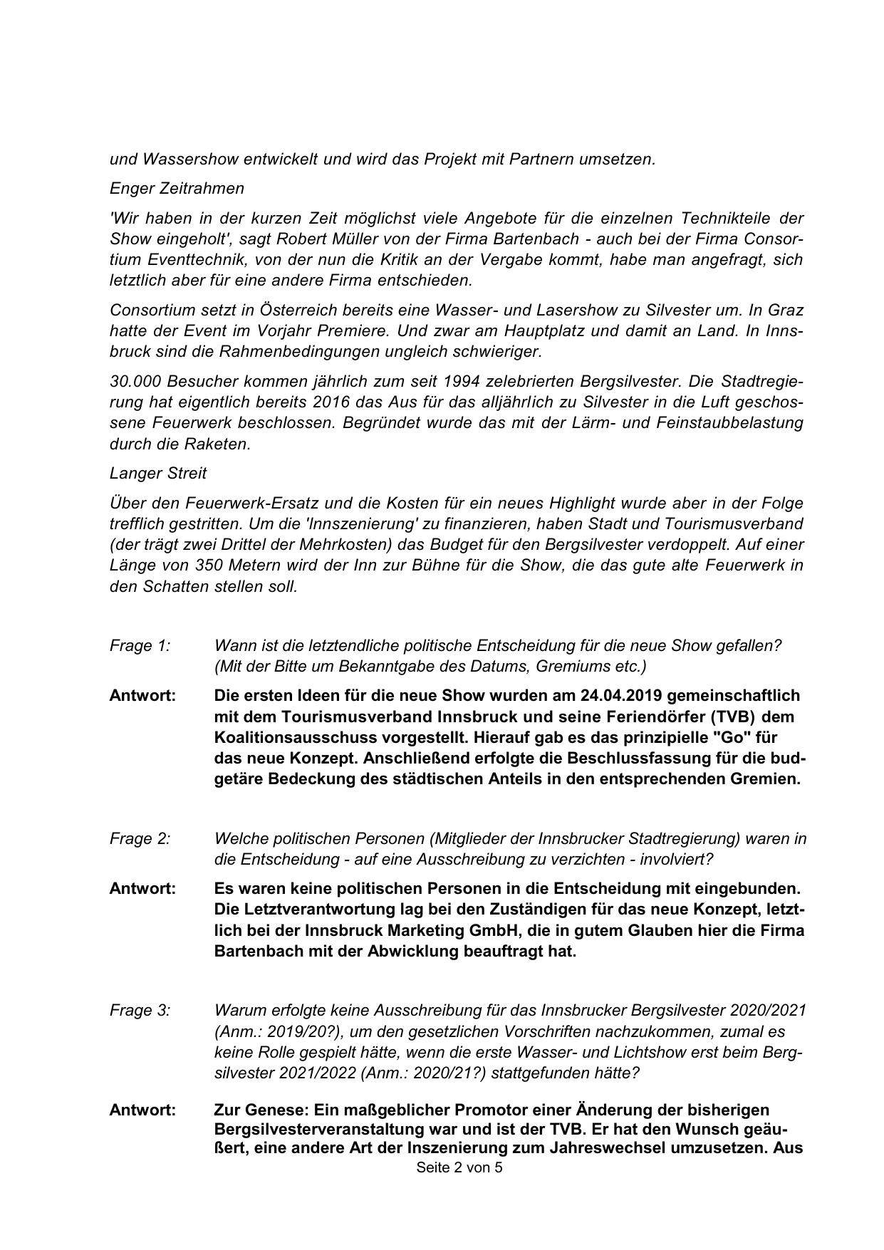 Warum erfolgte keine Ausschreibung für das Innsbrucker Bergsilvester 2020/2021