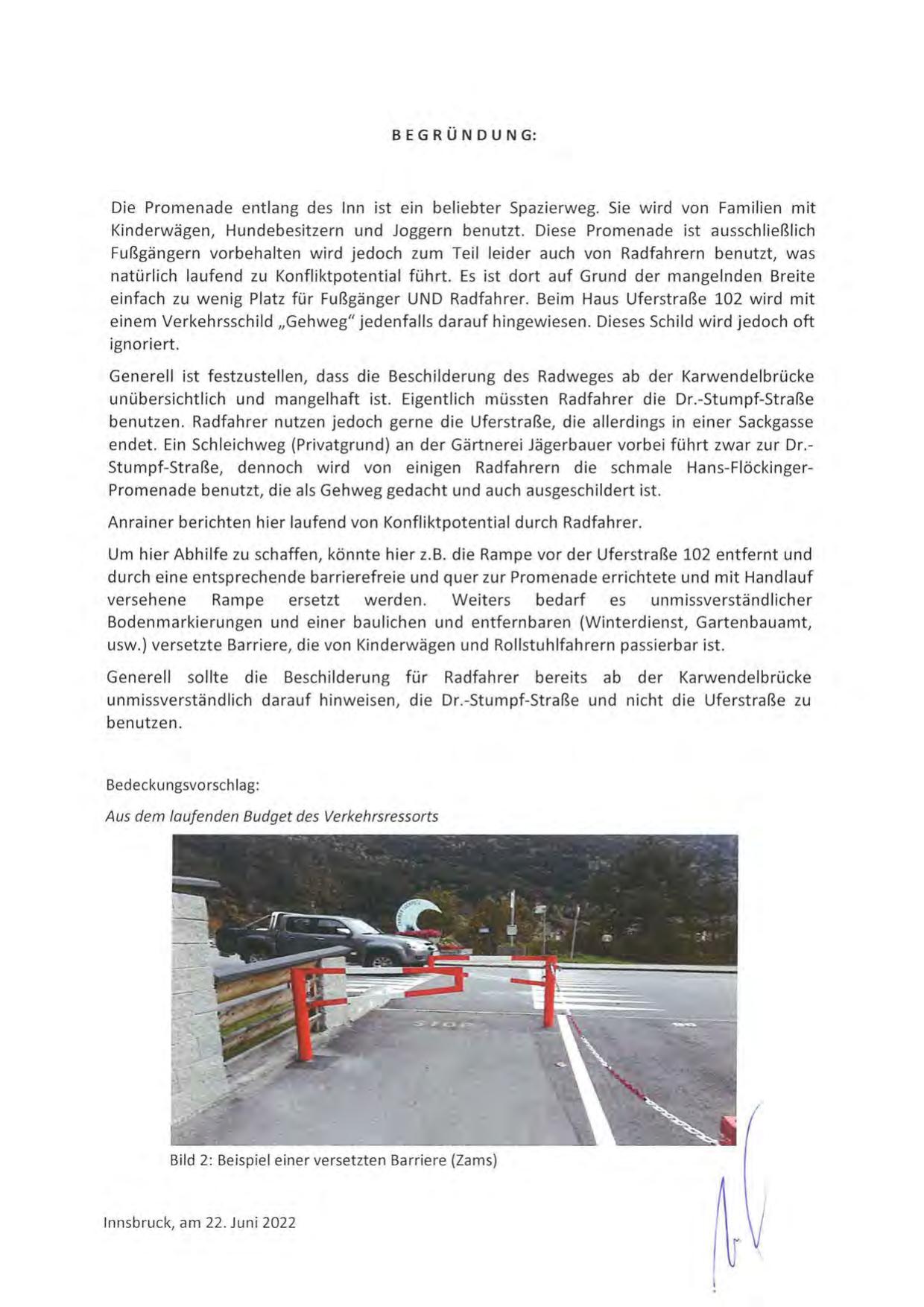 endet. Ein Schleichweg {Privatgrund) an der Gärtnerei Jägerbauer vorbei führt zwar zur Dr.Stumpf-Straße, dennoch wird von einigen Radfahrern die schmale Hans-FlöckingerPromenade benutzt, die als Gehweg gedacht und auch ausgeschildert ist.