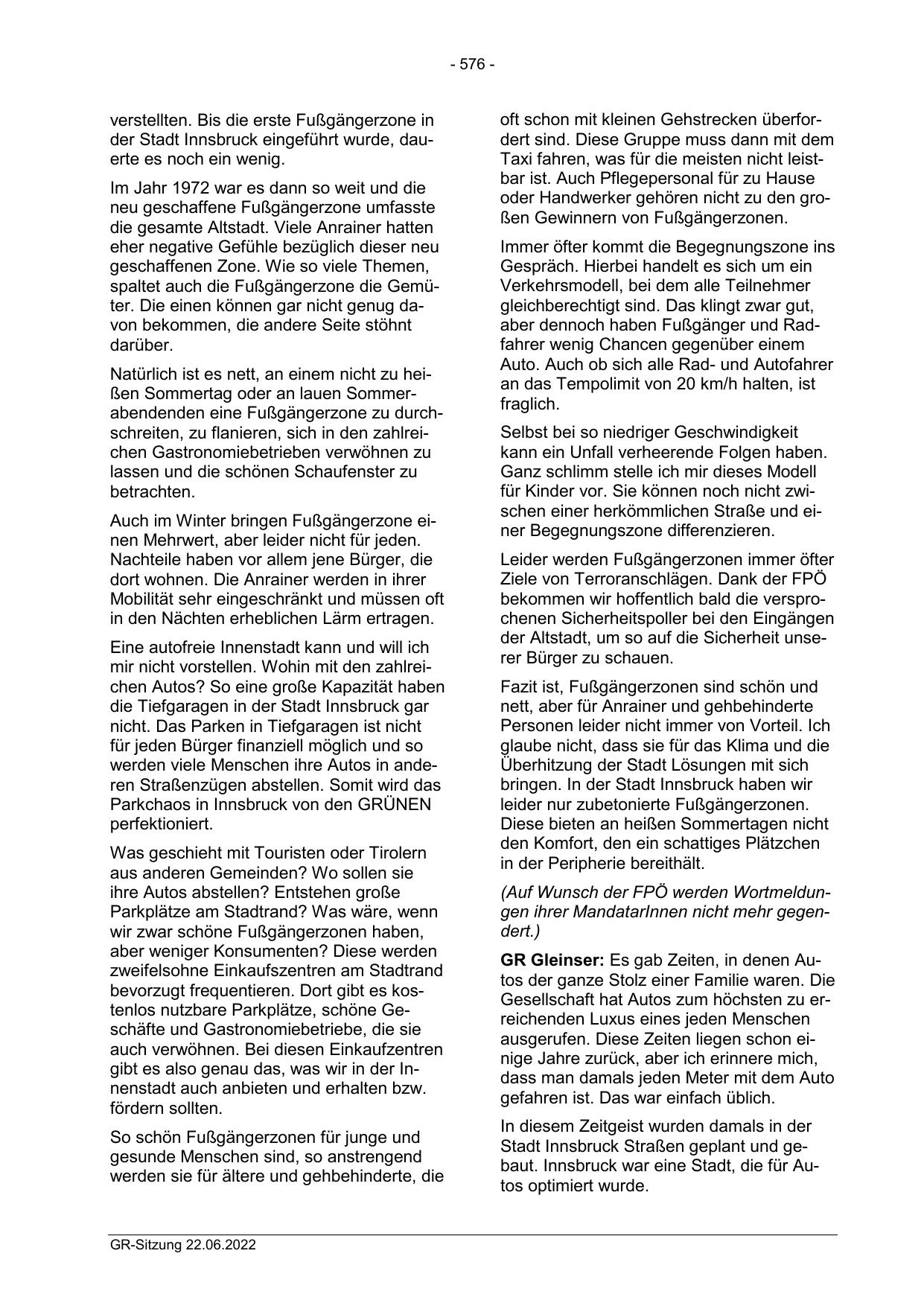 (Auf Wunsch der FPÖ werden Wortmeldungen ihrer MandatarInnen nicht mehr gegendert.)