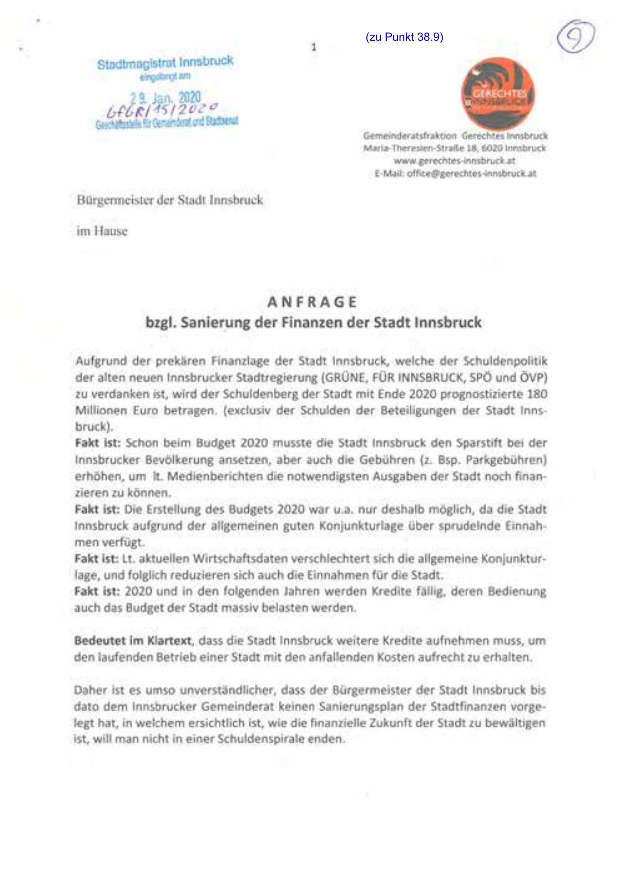 bzgl. Sanier_ung der Finanzen der Stadt Innsbruck