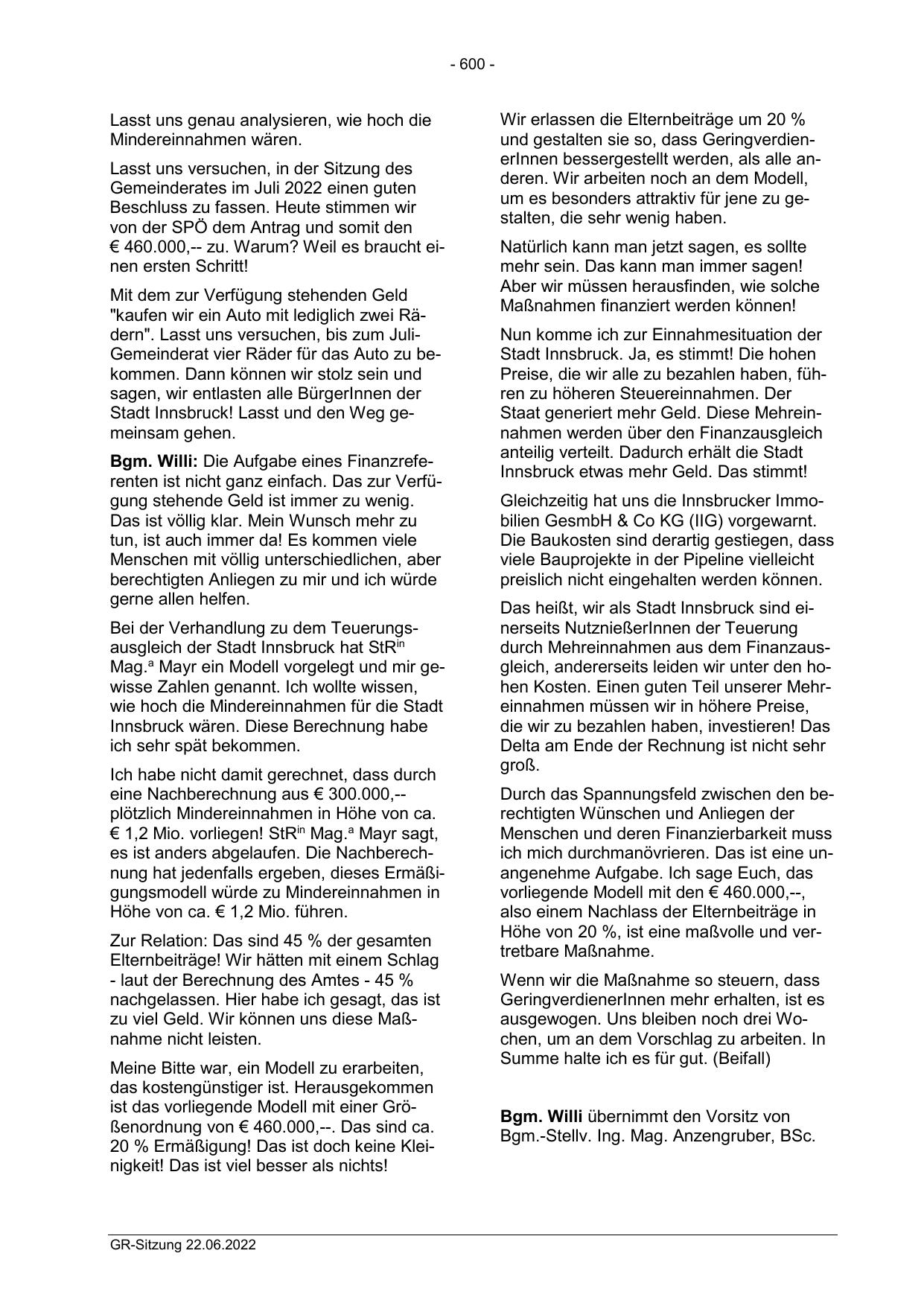 Bei der Verhandlung zu dem Teuerungsausgleich der Stadt Innsbruck hat StRin