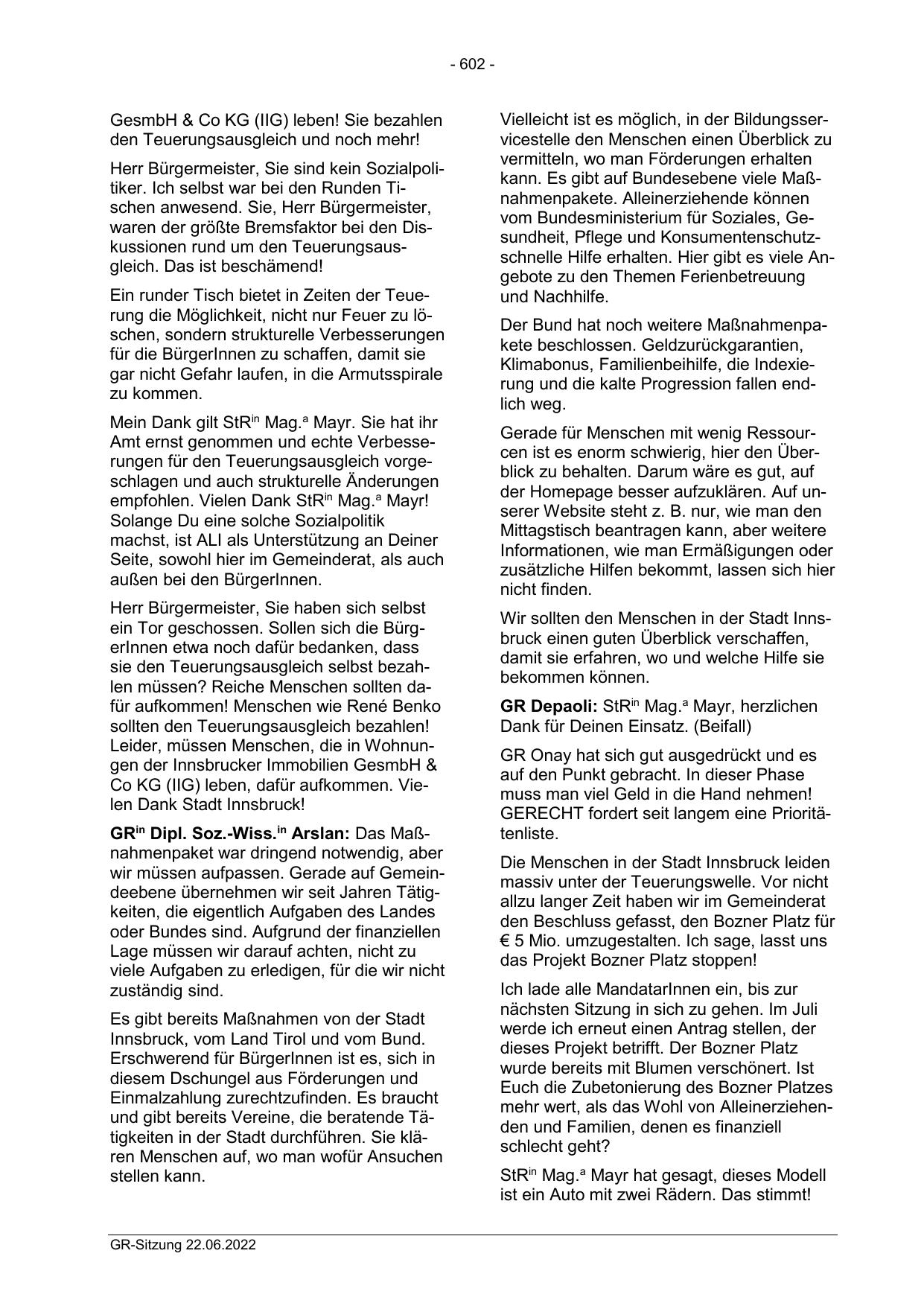 GR Depaoli: StRin Mag.a Mayr, herzlichen