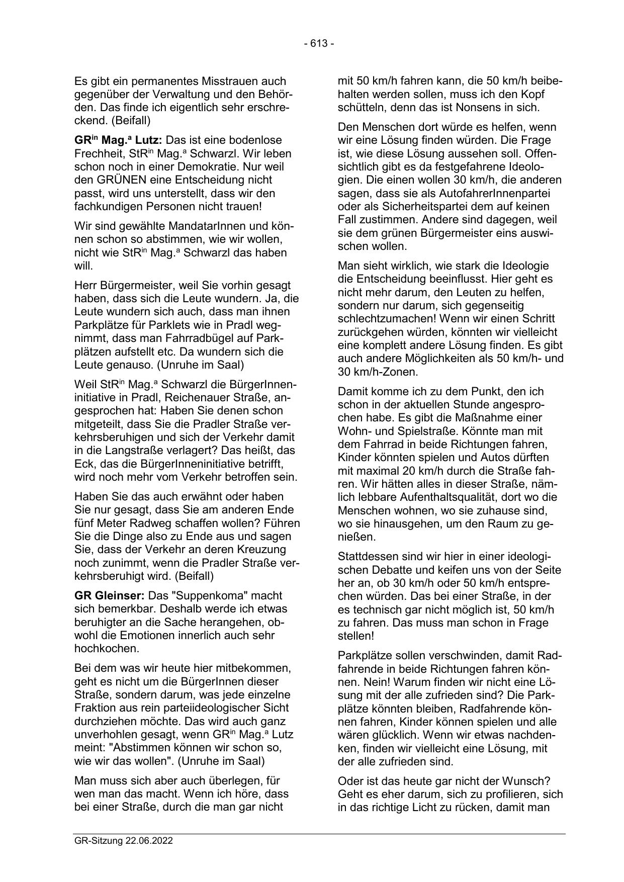 unverhohlen gesagt, wenn GRin Mag.a Lutz