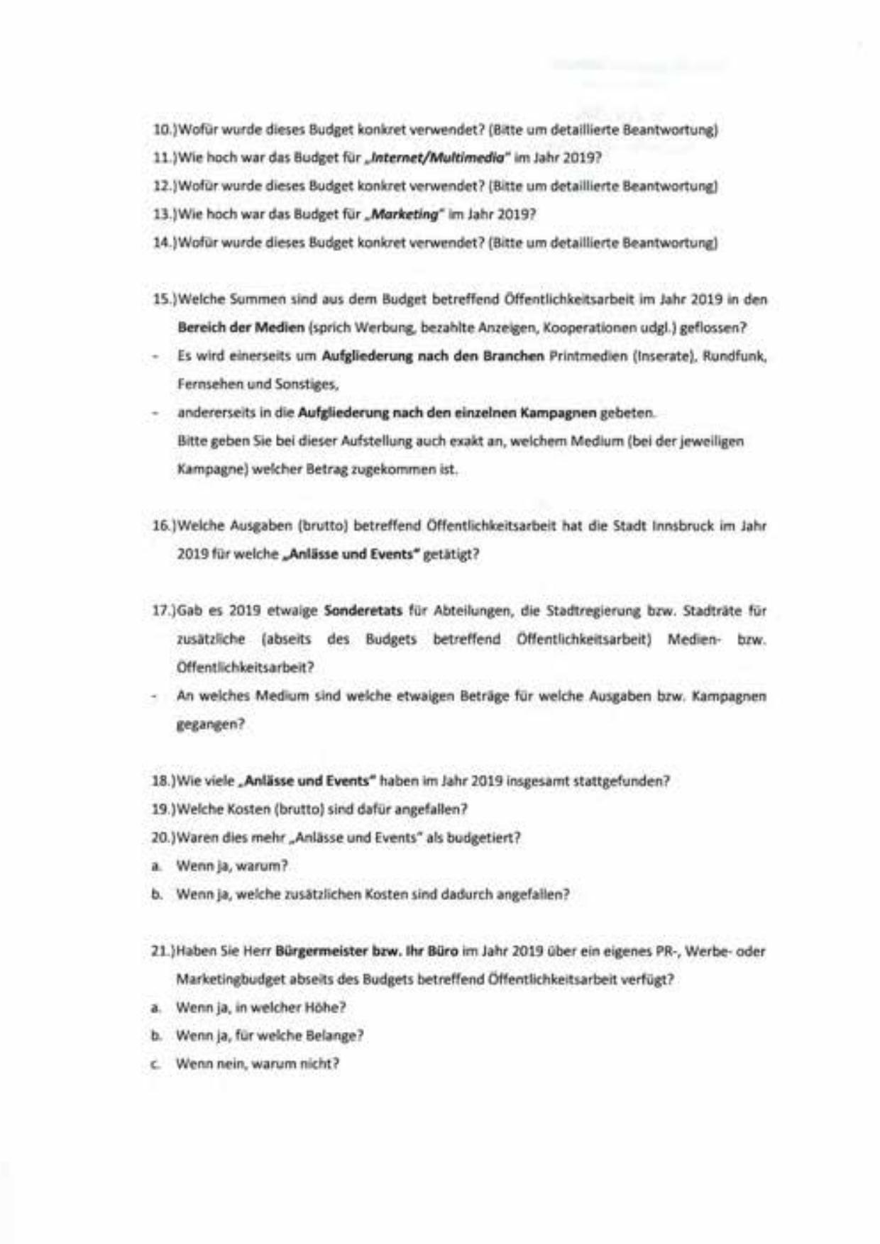 16.)Welche Ausgaben (brutto) betreffend Öffentlichkeitsarbeit hat die Stadt Innsbruck im Jahr