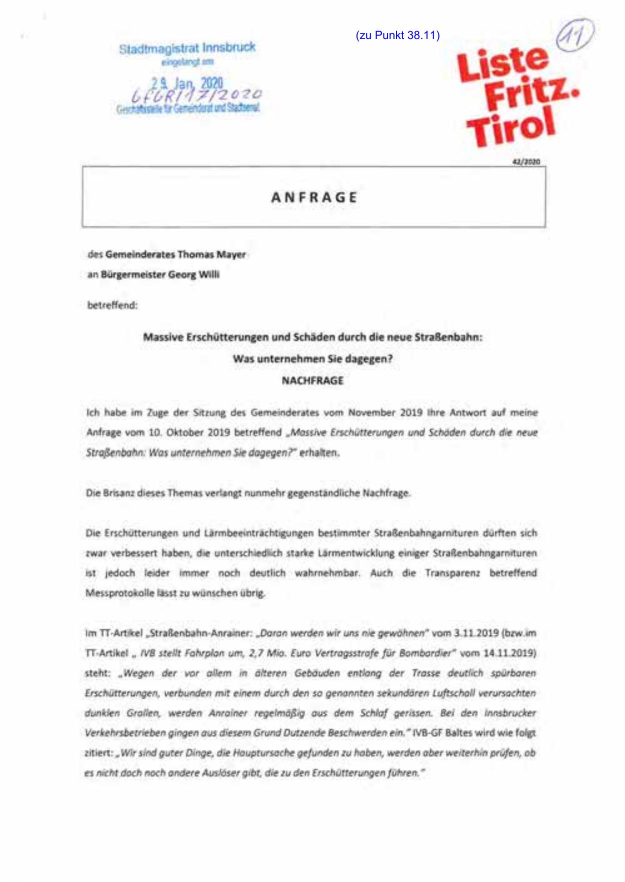 Im TI-Artikel „Straßenbahn-Anrainer: ,,Daran werden wir uns nie gewöhnen" vom 3.11.2019 (bzw.im