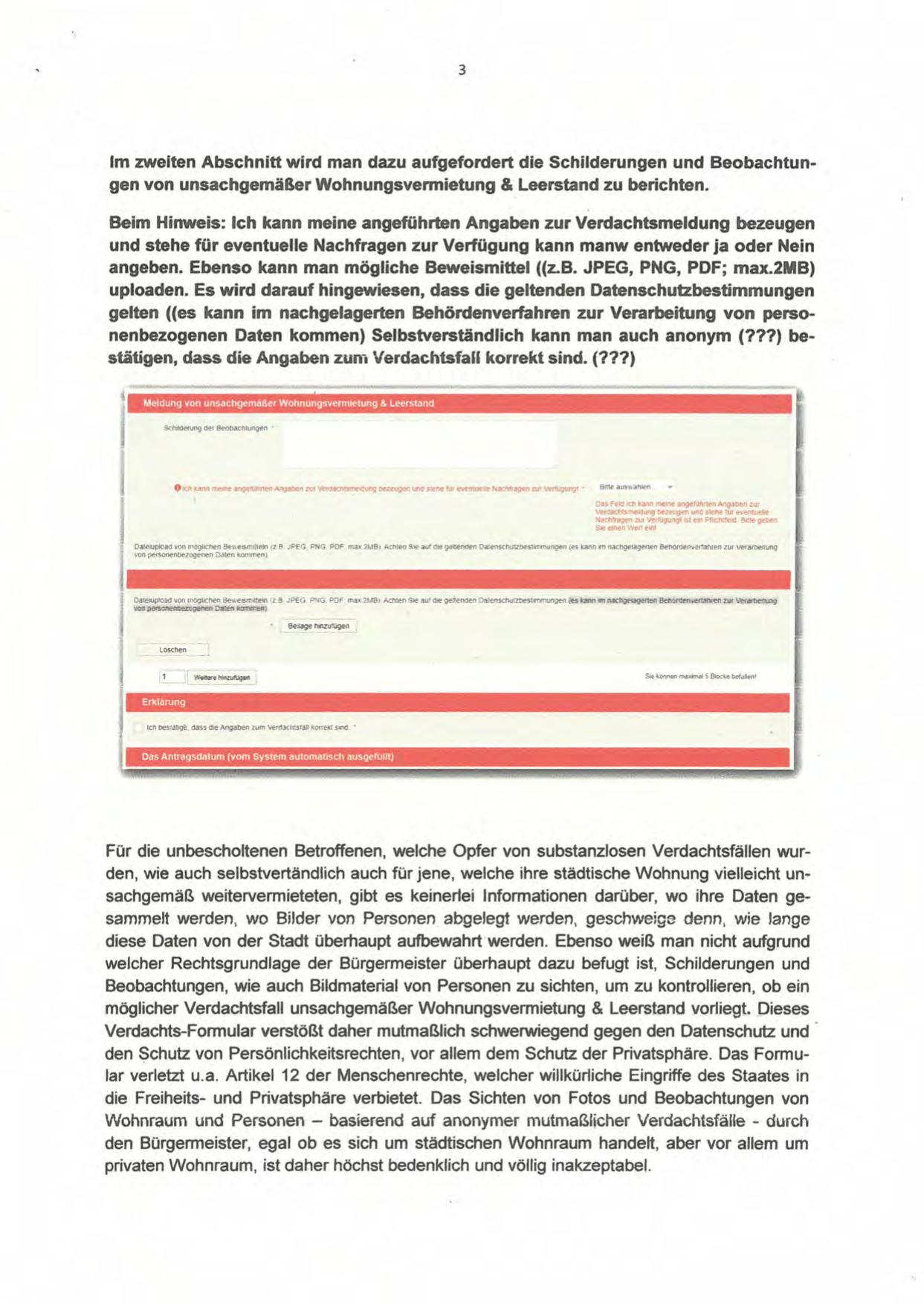 den $chutz von Persönlichkeitsrechten, vor allem dem Schutz der Privatsphäre. Das Formular verletzt u.a. Artikel 12 der Menschenrechte, welcher willkürliche Eingriffe des Staates in