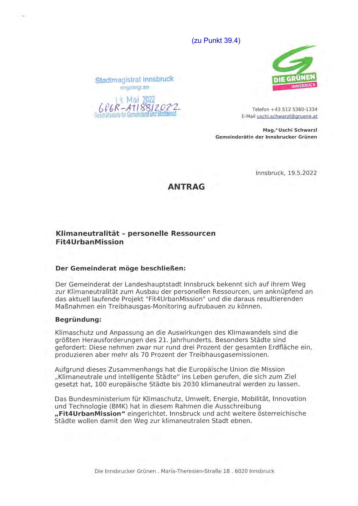 Die lnnsbrucker Grünen . Maria-Theresien-Straße 18 . 6020 Innsbruck