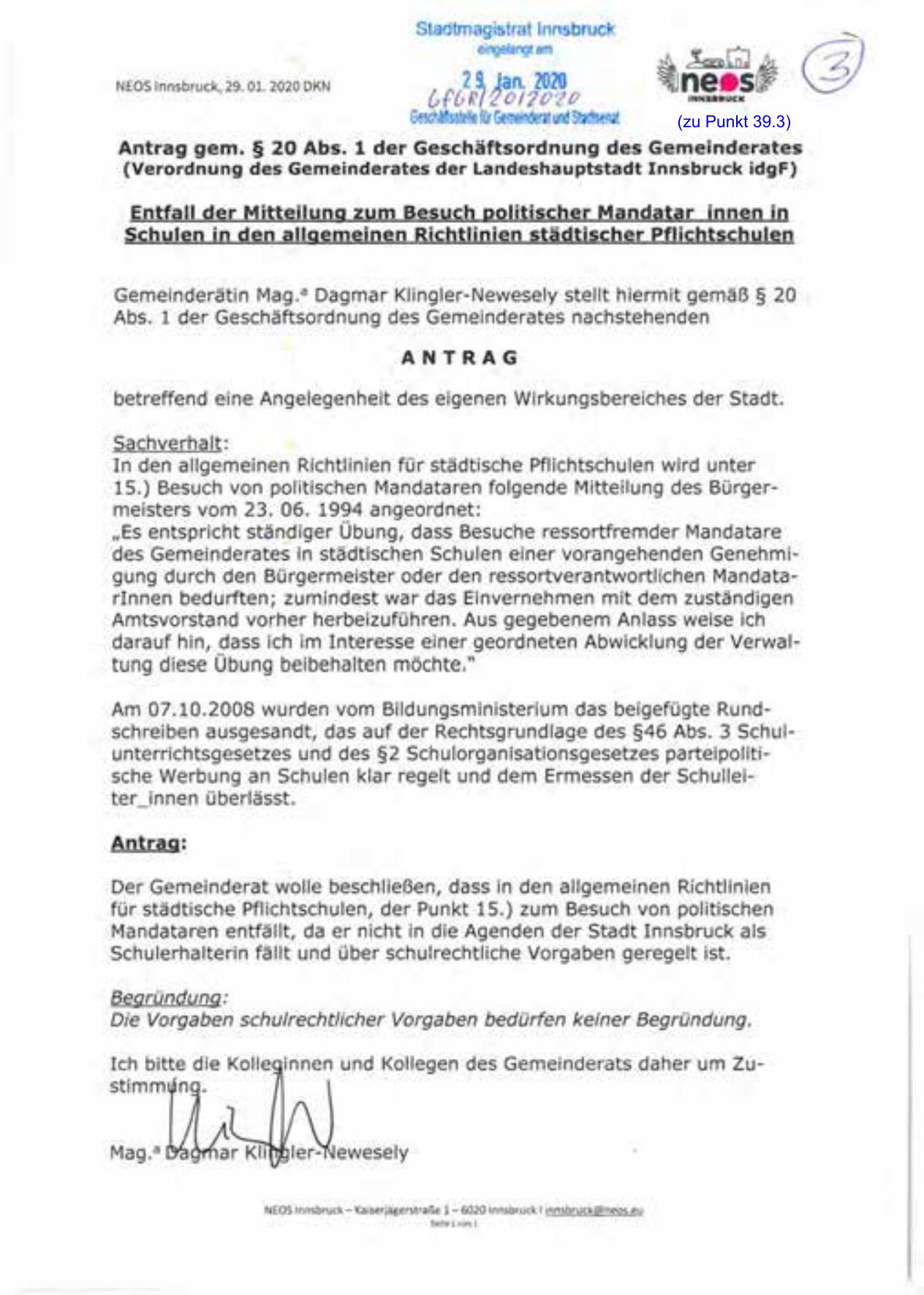 Mandataren entfällt, da er nicht in die Agenden der Stadt Innsbruck als