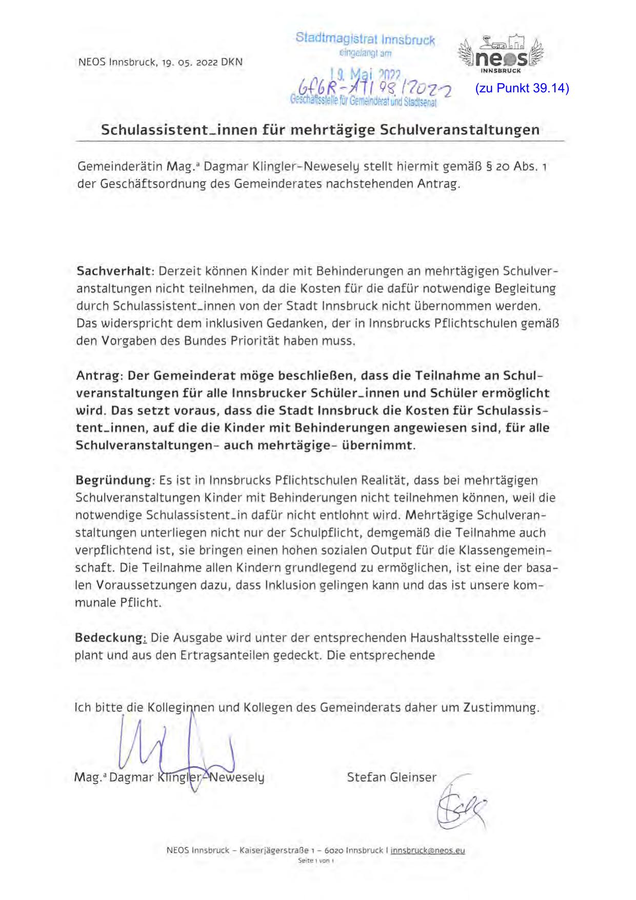 NEOS Innsbruck, 19 . 05. 2022 DKN