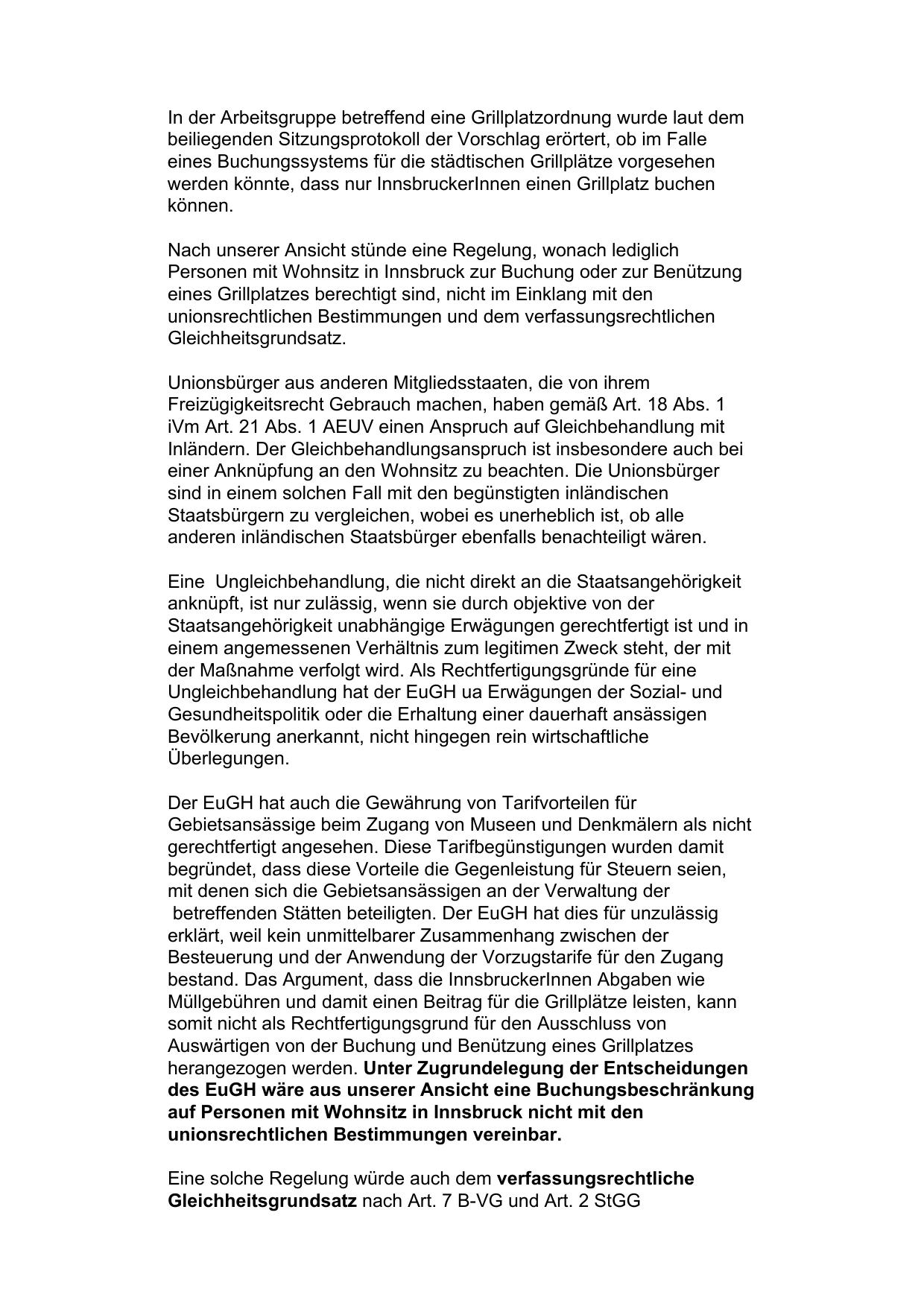 werden könnte, dass nur InnsbruckerInnen einen Grillplatz buchen