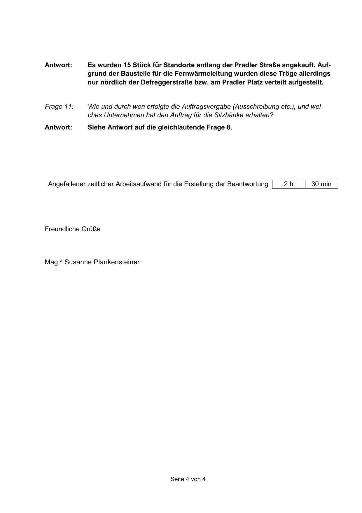 Angefallener zeitlicher Arbeitsaufwand für die Erstellung der Beantwortung
