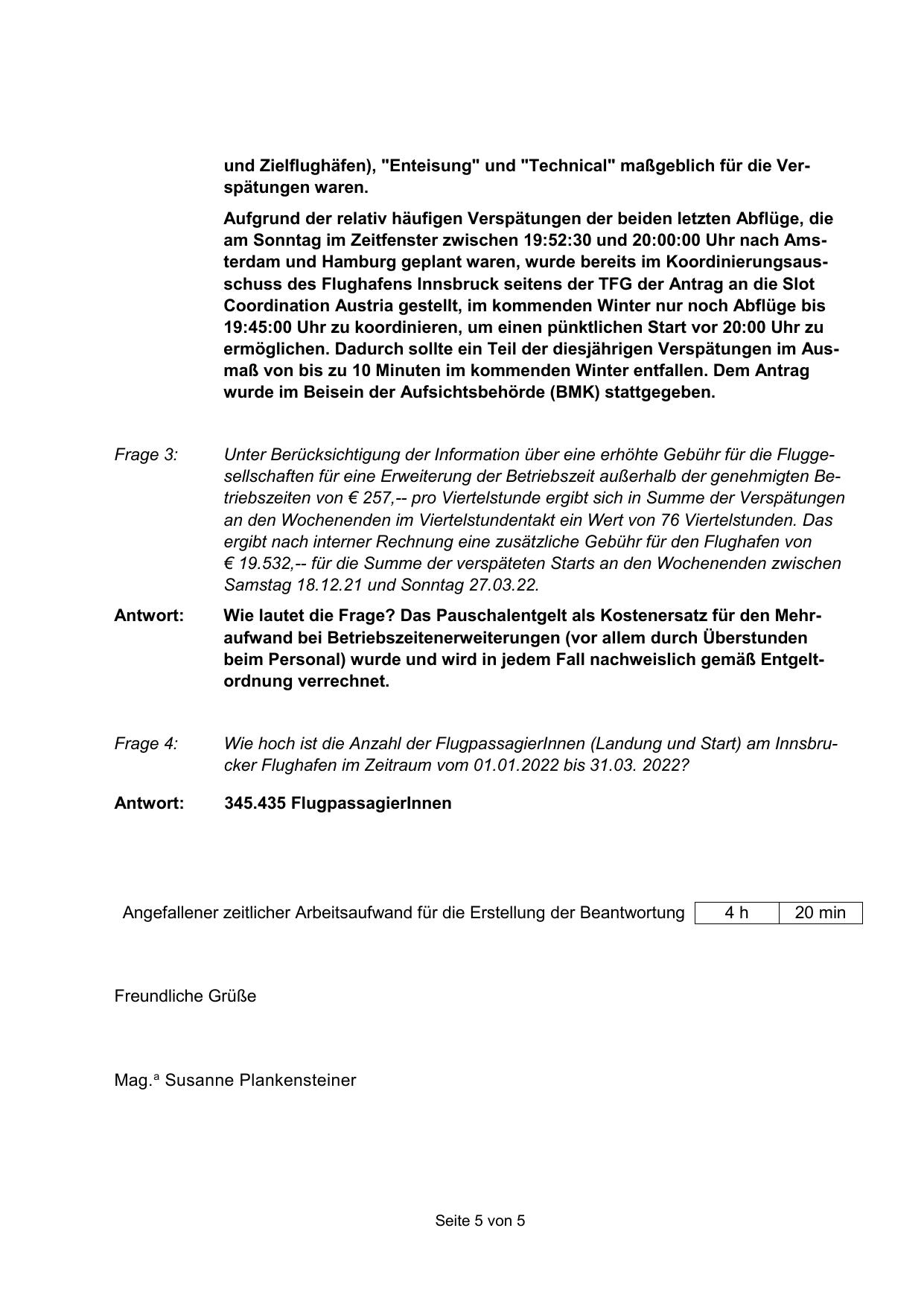 am Sonntag im Zeitfenster zwischen 19:52:30 und 20:00:00 Uhr nach Amsterdam und Hamburg geplant waren, wurde bereits im Koordinierungsausschuss des Flughafens Innsbruck seitens der TFG der Antrag an die Slot