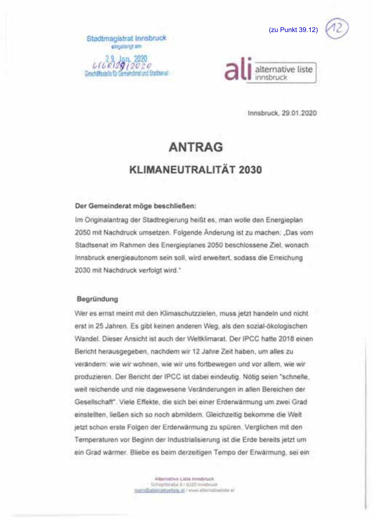 Im Originalantrag der Stadtregierung heißt es , man wolle den Energieplan