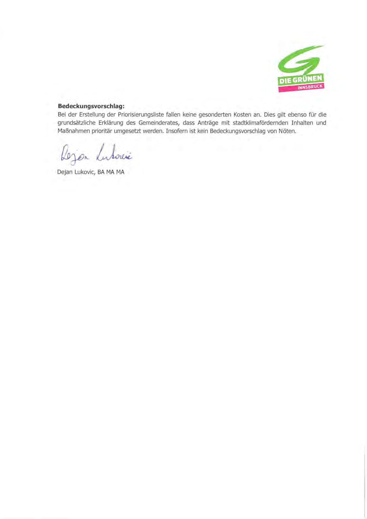 Maßnahmen prioritär umgesetzt werden. Insofern ist kein Bedeckungsvorschlag von Nöten.