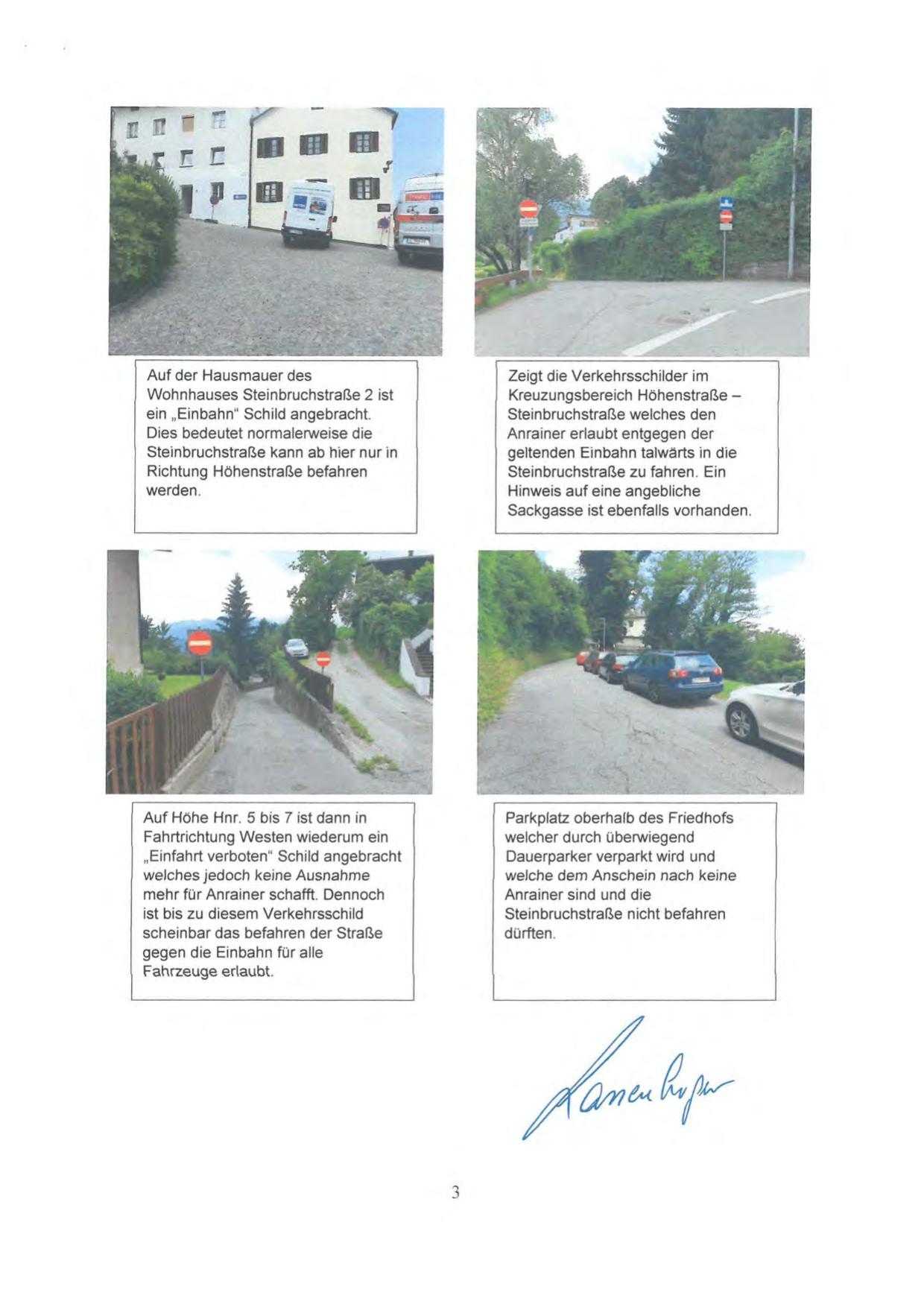 geltenden Einbahn talwärts in die