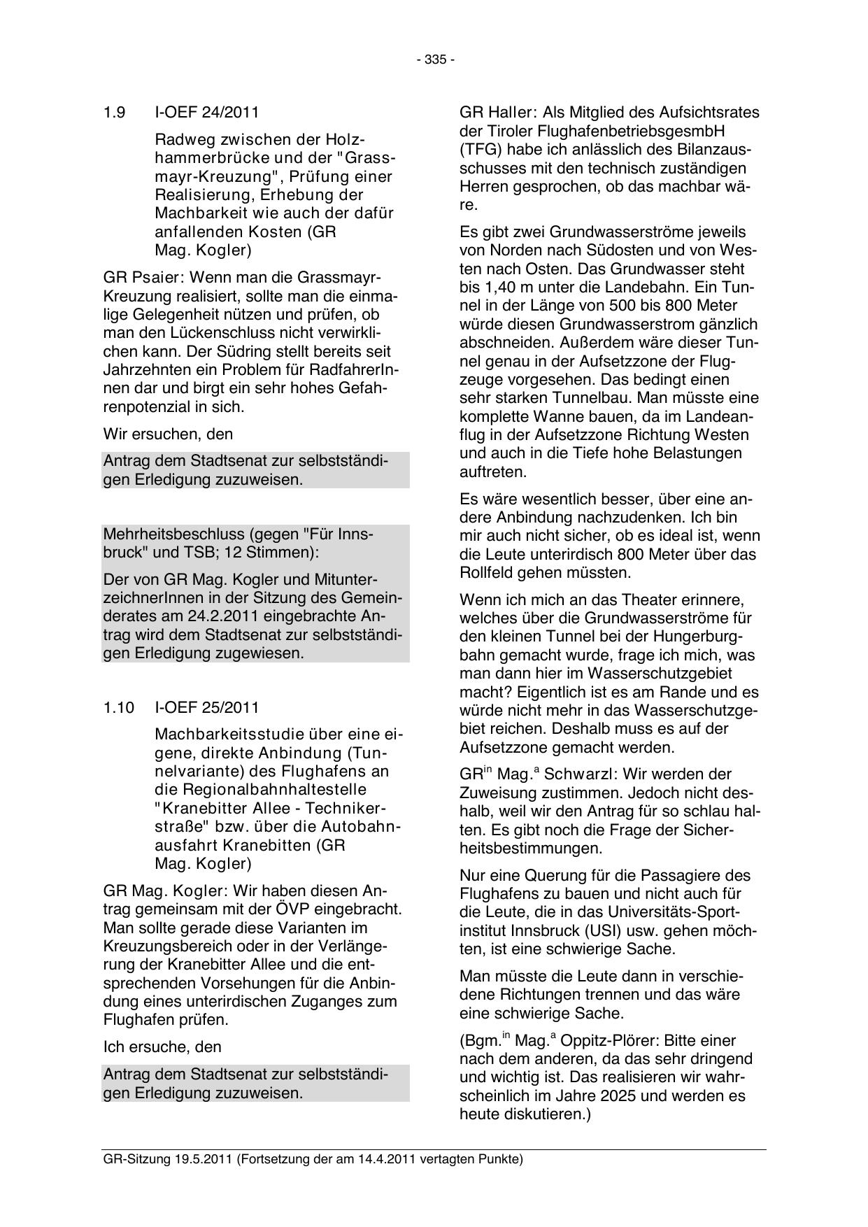 Mehrheitsbeschluss (gegen "Für Innsbruck" und TSB; 12 Stimmen):