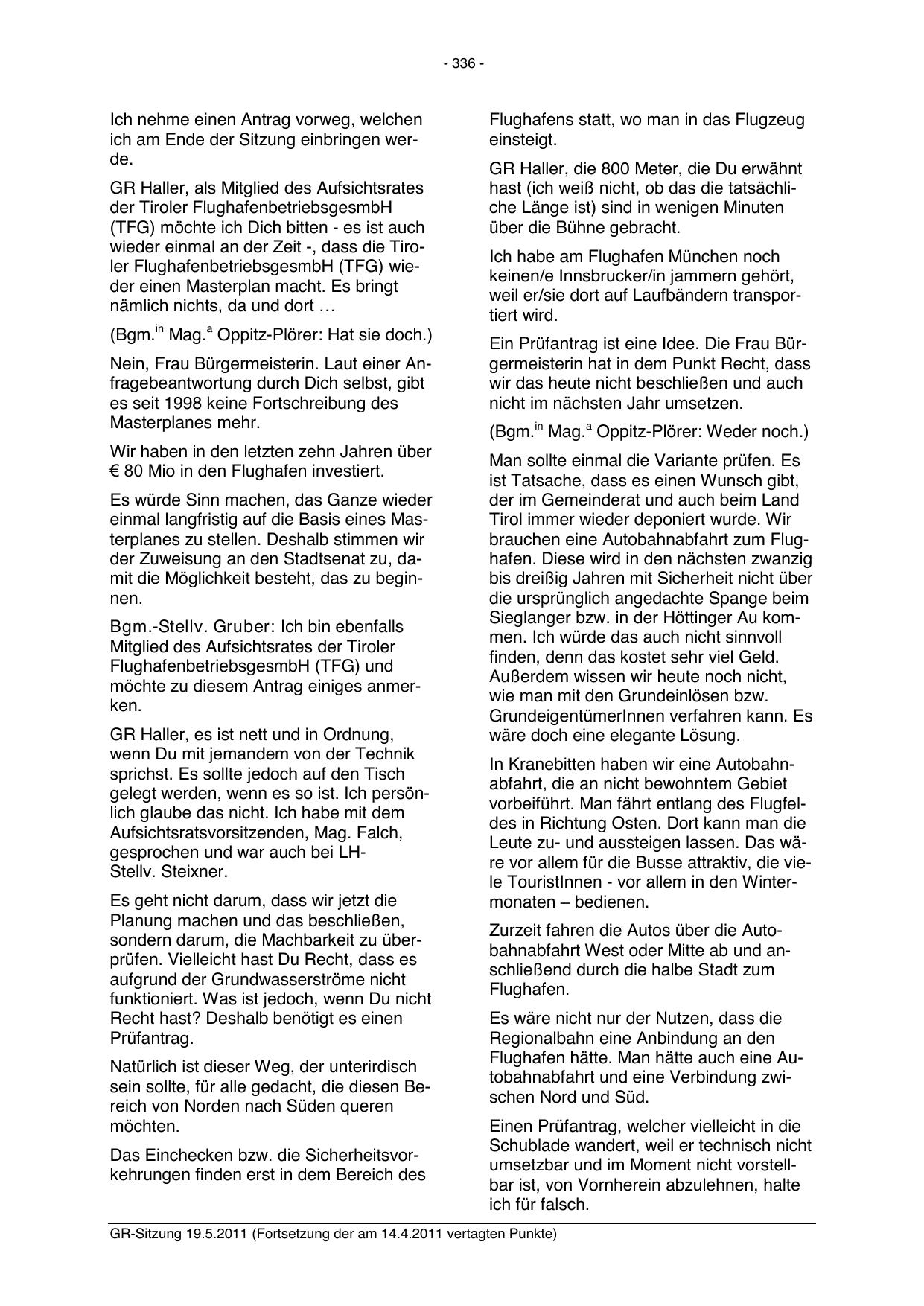 GR-Sitzung 19.5.2011 (Fortsetzung der am 14.4.2011 vertagten Punkte)