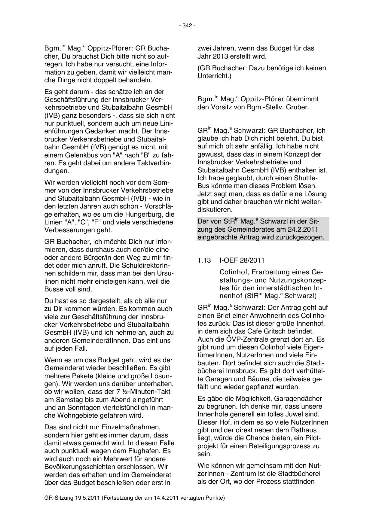 GR-Sitzung 19.5.2011 (Fortsetzung der am 14.4.2011 vertagten Punkte)