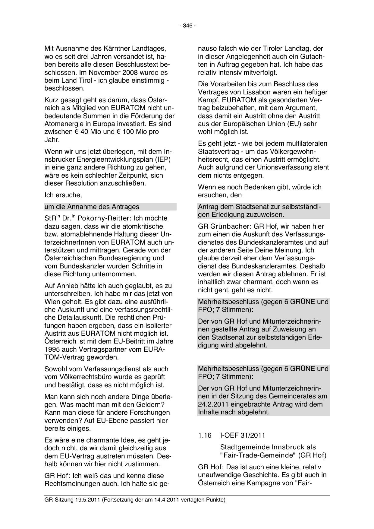 GR-Sitzung 19.5.2011 (Fortsetzung der am 14.4.2011 vertagten Punkte)