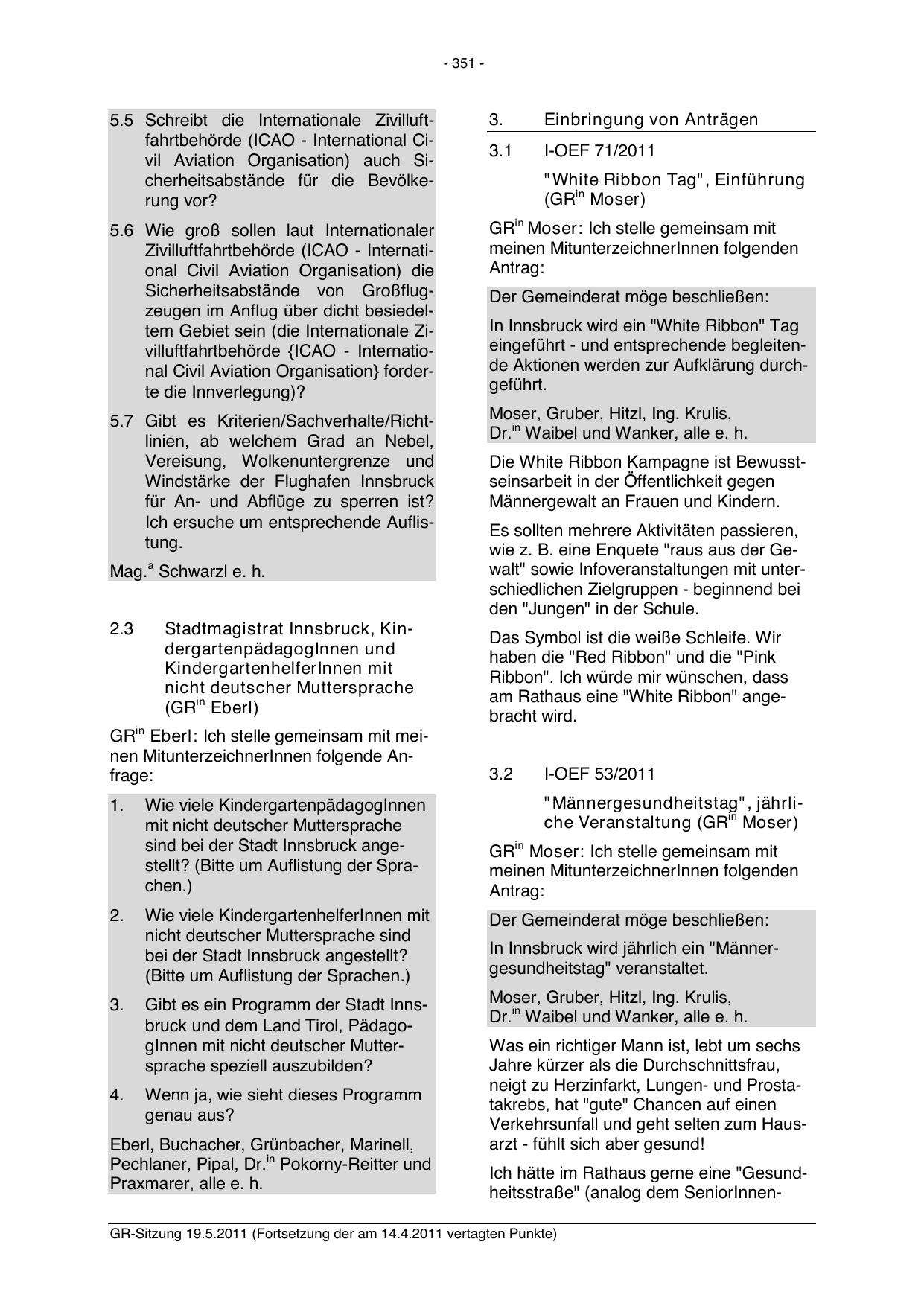 GR-Sitzung 19.5.2011 (Fortsetzung der am 14.4.2011 vertagten Punkte)