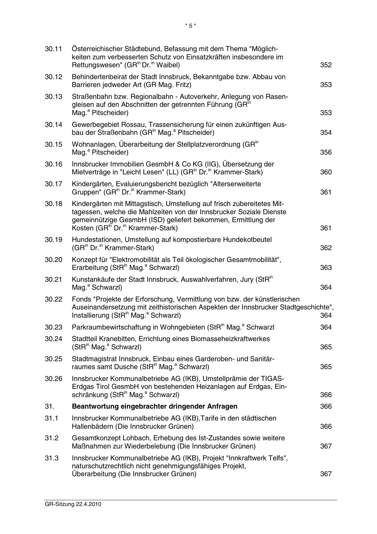 Stadtmagistrat Innsbruck, Einbau eines Garderoben- und Sanitärraumes samt Dusche (StRin Mag.a Schwarzl)