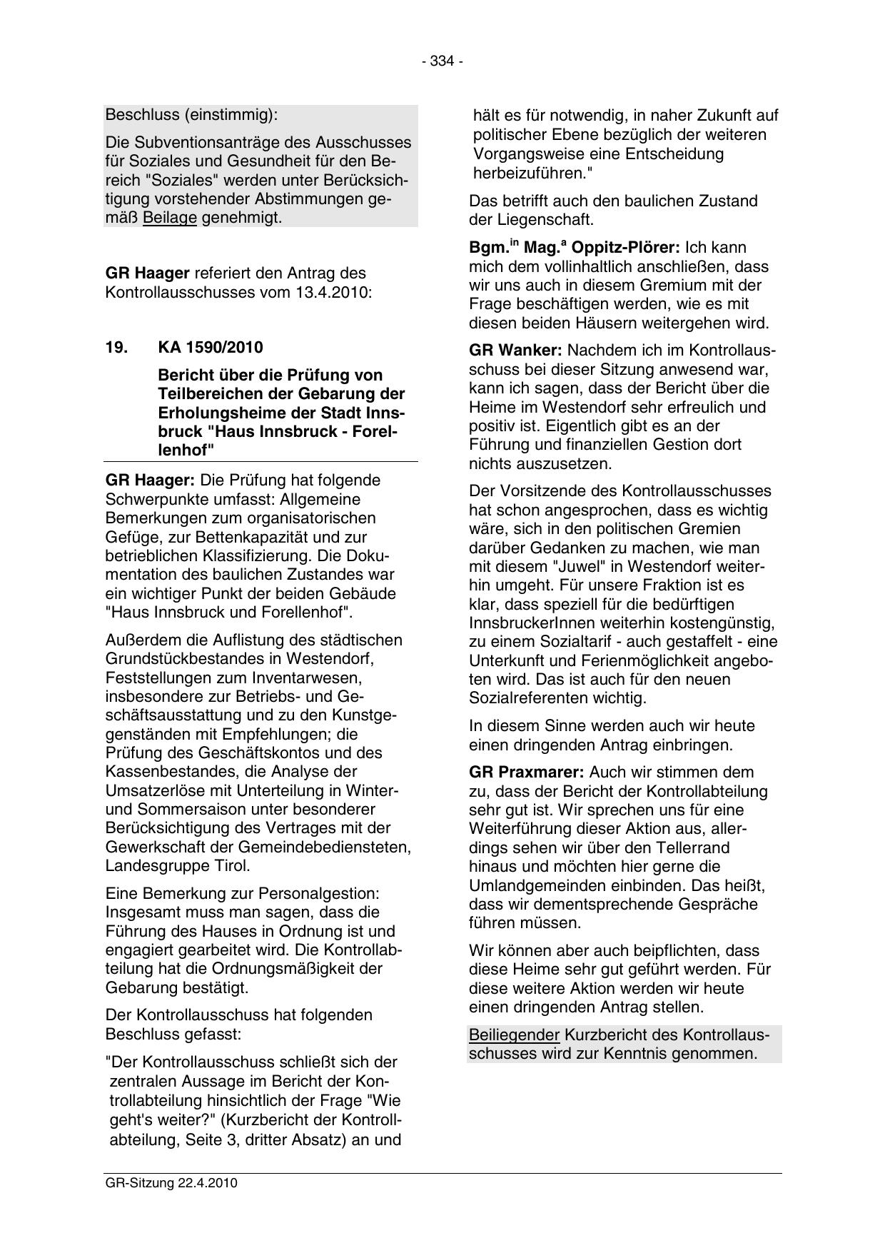 GR Wanker: Nachdem ich im Kontrollausschuss bei dieser Sitzung anwesend war,