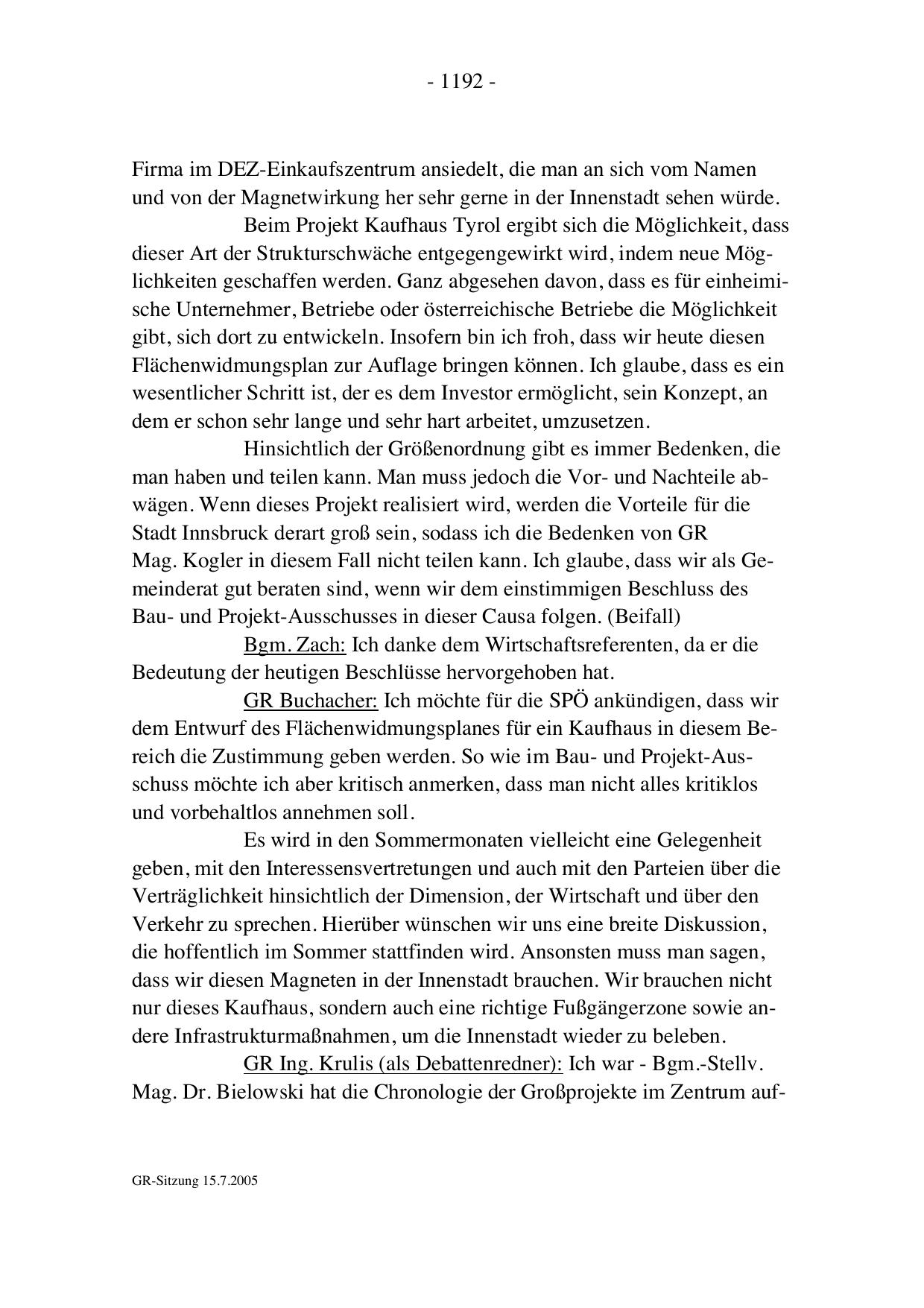 GR-Sitzung 15.7.2005