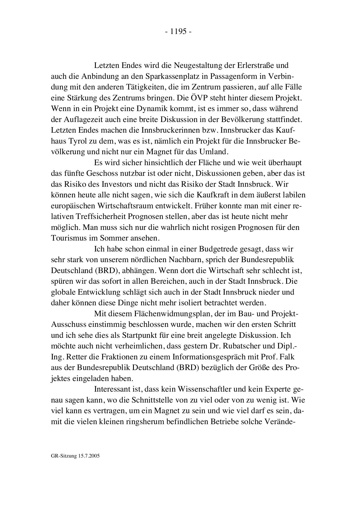das Risiko des Investors und nicht das Risiko der Stadt Innsbruck. Wir