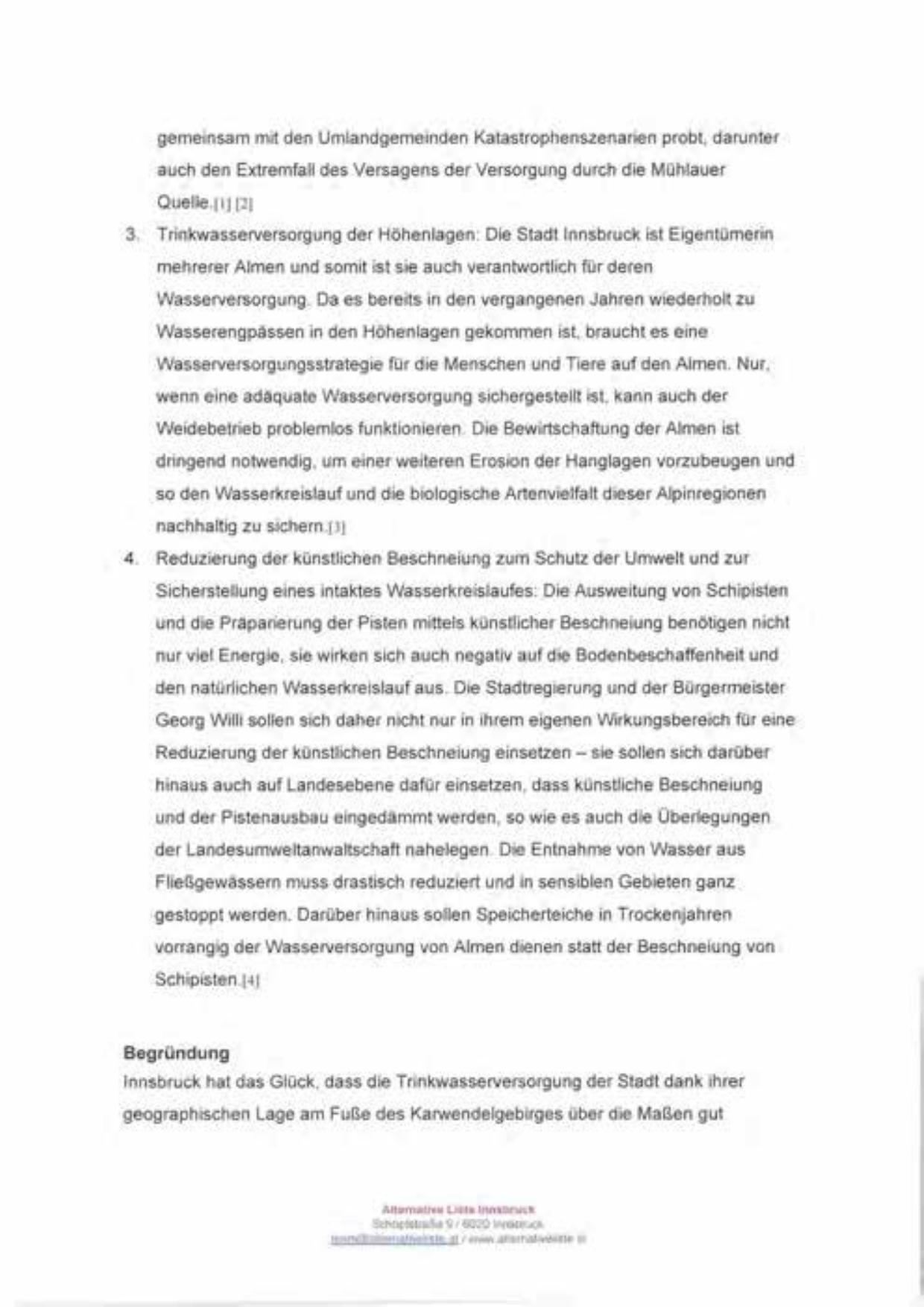 3. Trinkwasserversorgung der Höhenlagen : Die Stadt Innsbruck ist Eigentümerin