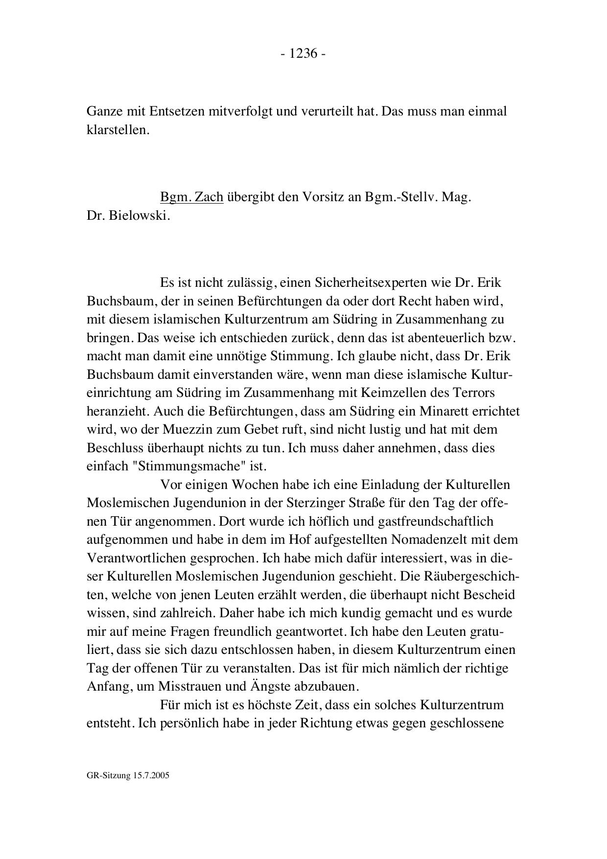 heranzieht. Auch die Befürchtungen, dass am Südring ein Minarett errichtet
