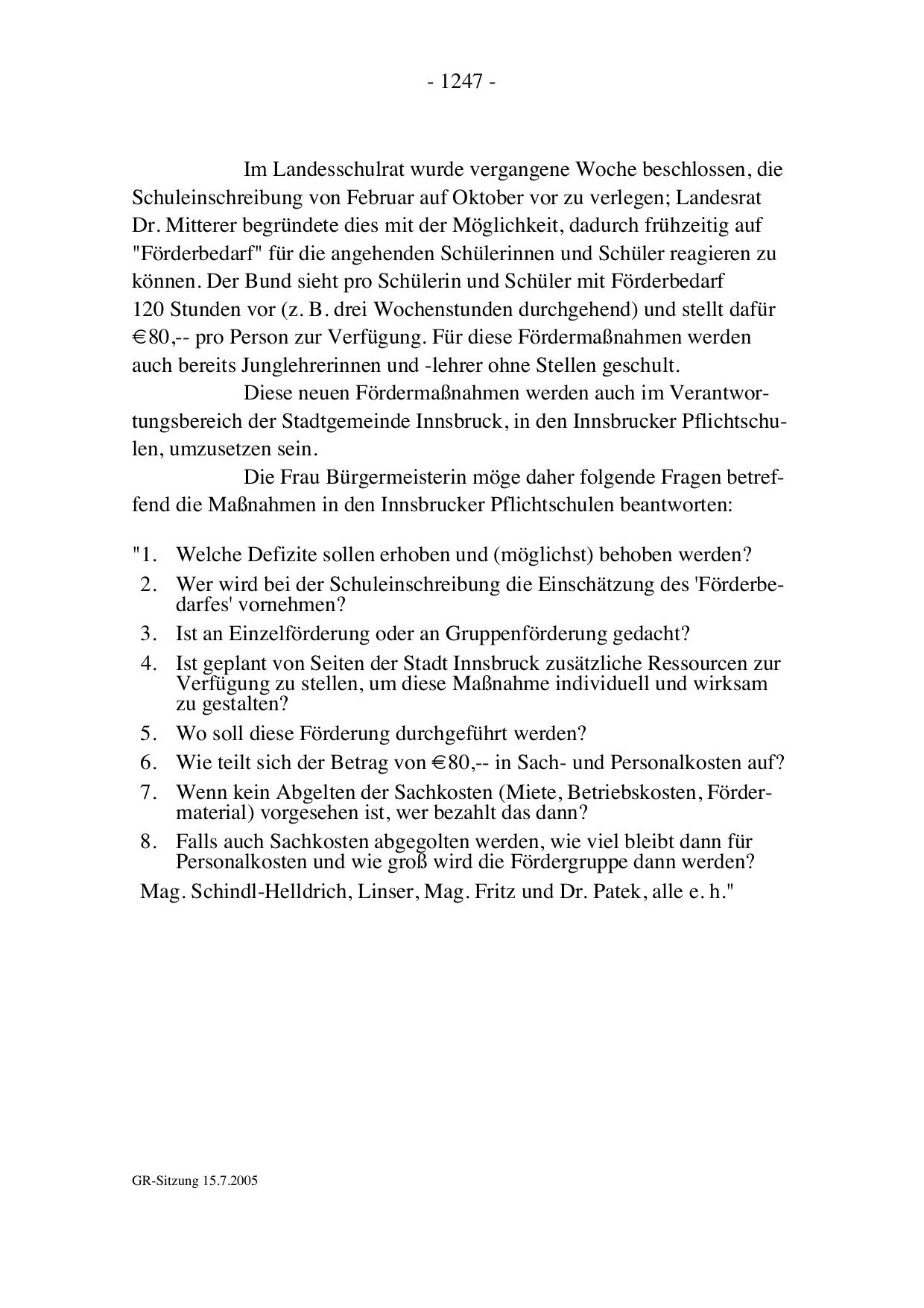 GR-Sitzung 15.7.2005
