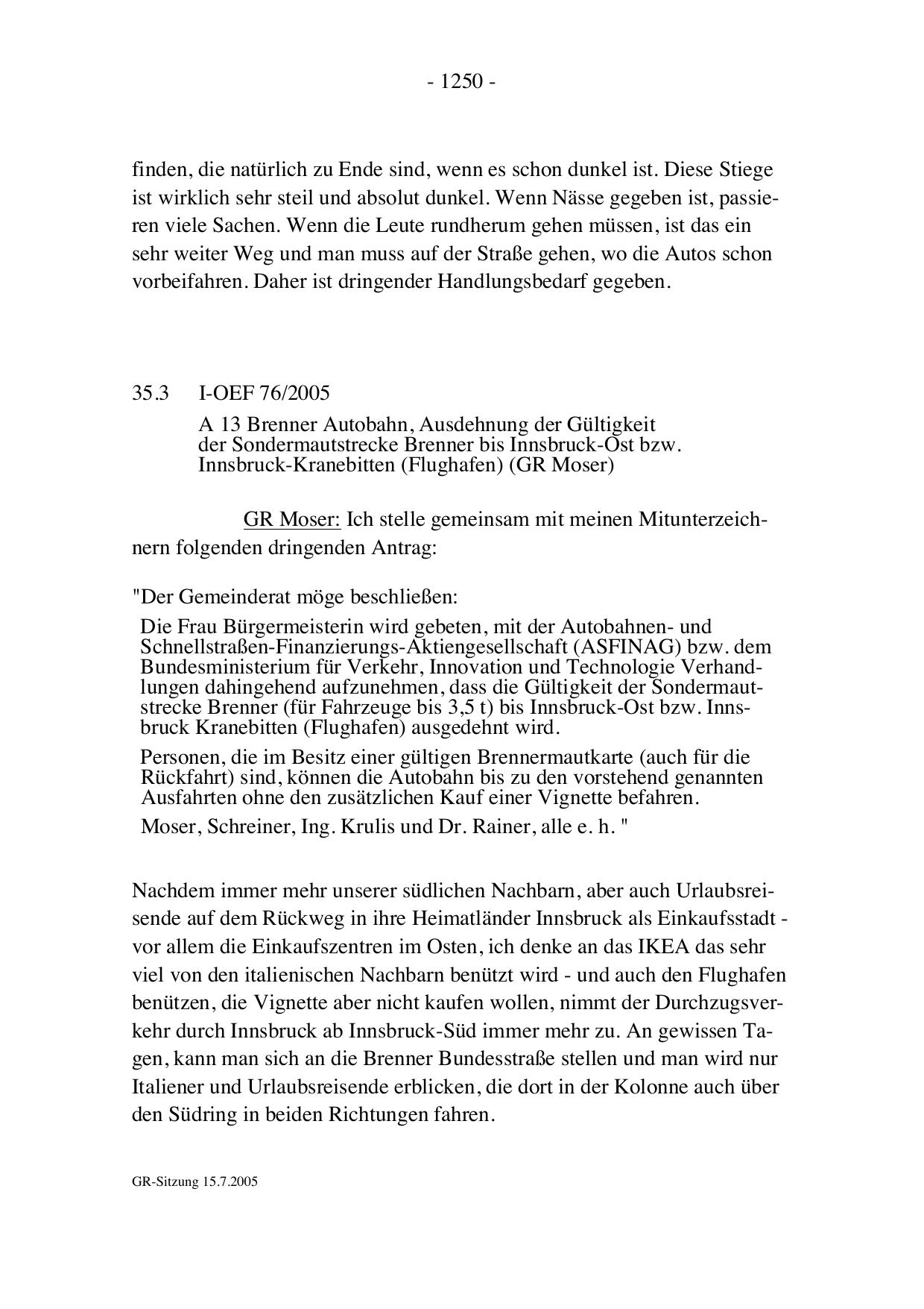 GR Moser: Ich stelle gemeinsam mit meinen Mitunterzeichnern folgenden dringenden Antrag: