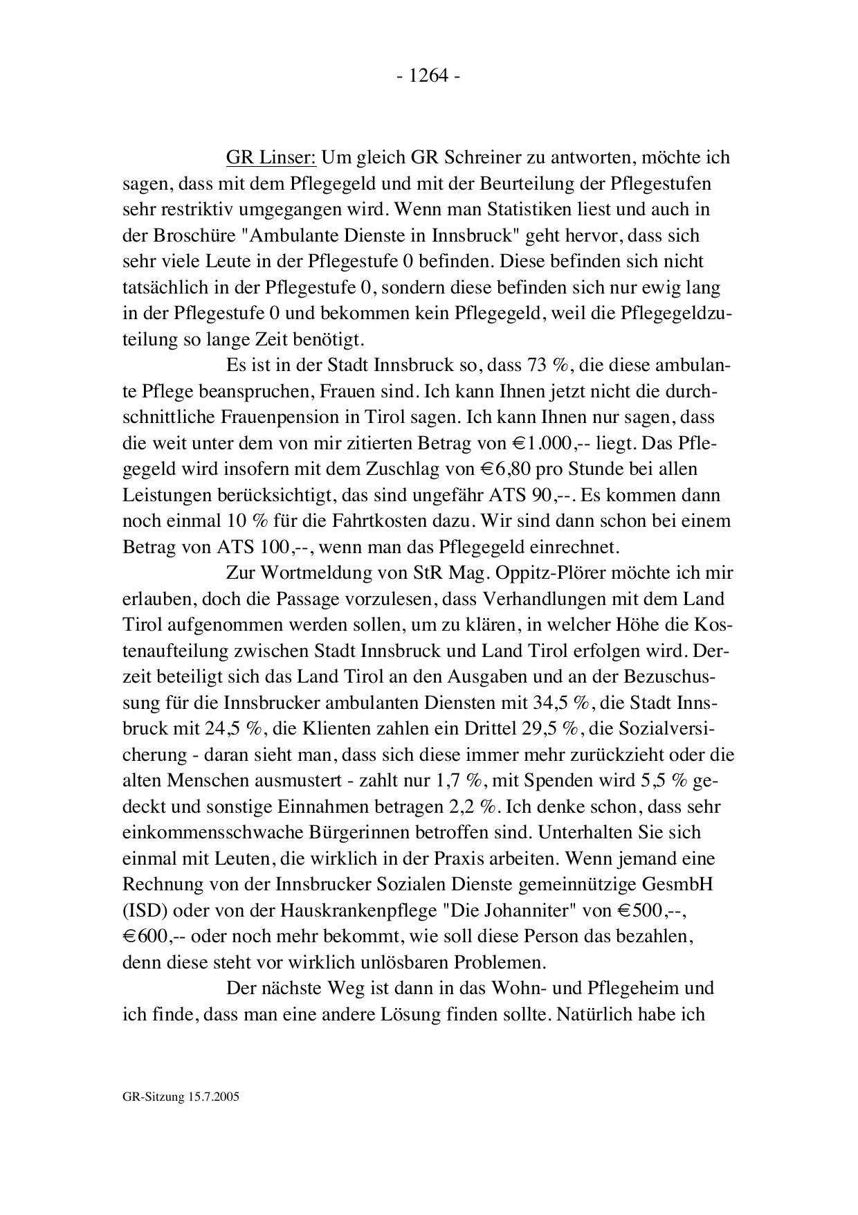 Es ist in der Stadt Innsbruck so, dass 73 %, die diese ambulante Pflege beanspruchen, Frauen sind. Ich kann Ihnen jetzt nicht die durchschnittliche Frauenpension in Tirol sagen. Ich kann Ihnen nur sagen, dass